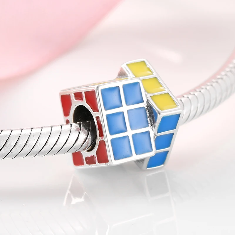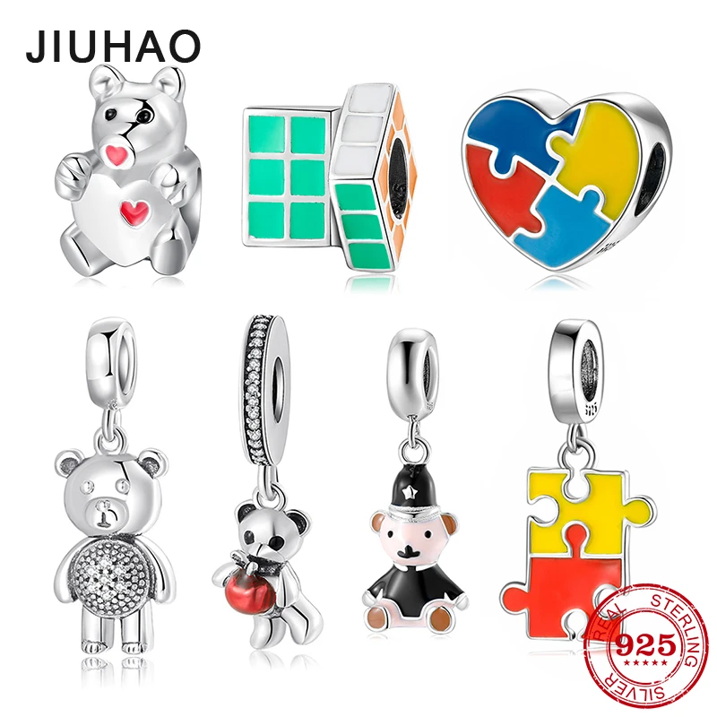 2021 модные квадратные радужные бусины-пазлы из серебра 925 пробы с медведем, подходят для оригинальных шармов, изготовление ювелирных изделий для браслетов JIUHAO