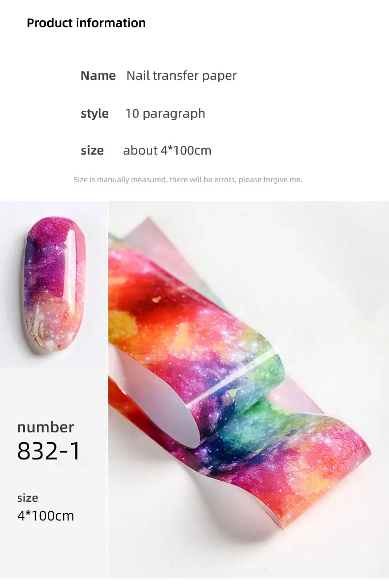 HNUIX 1 шт переводная бумага для дизайна ногтей, горячая распродажа, Радужное небо, японский стиль, фольга для ногтей, наклейка для лака для ногтей