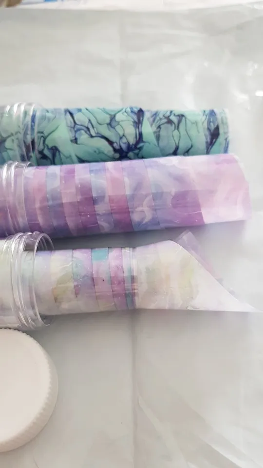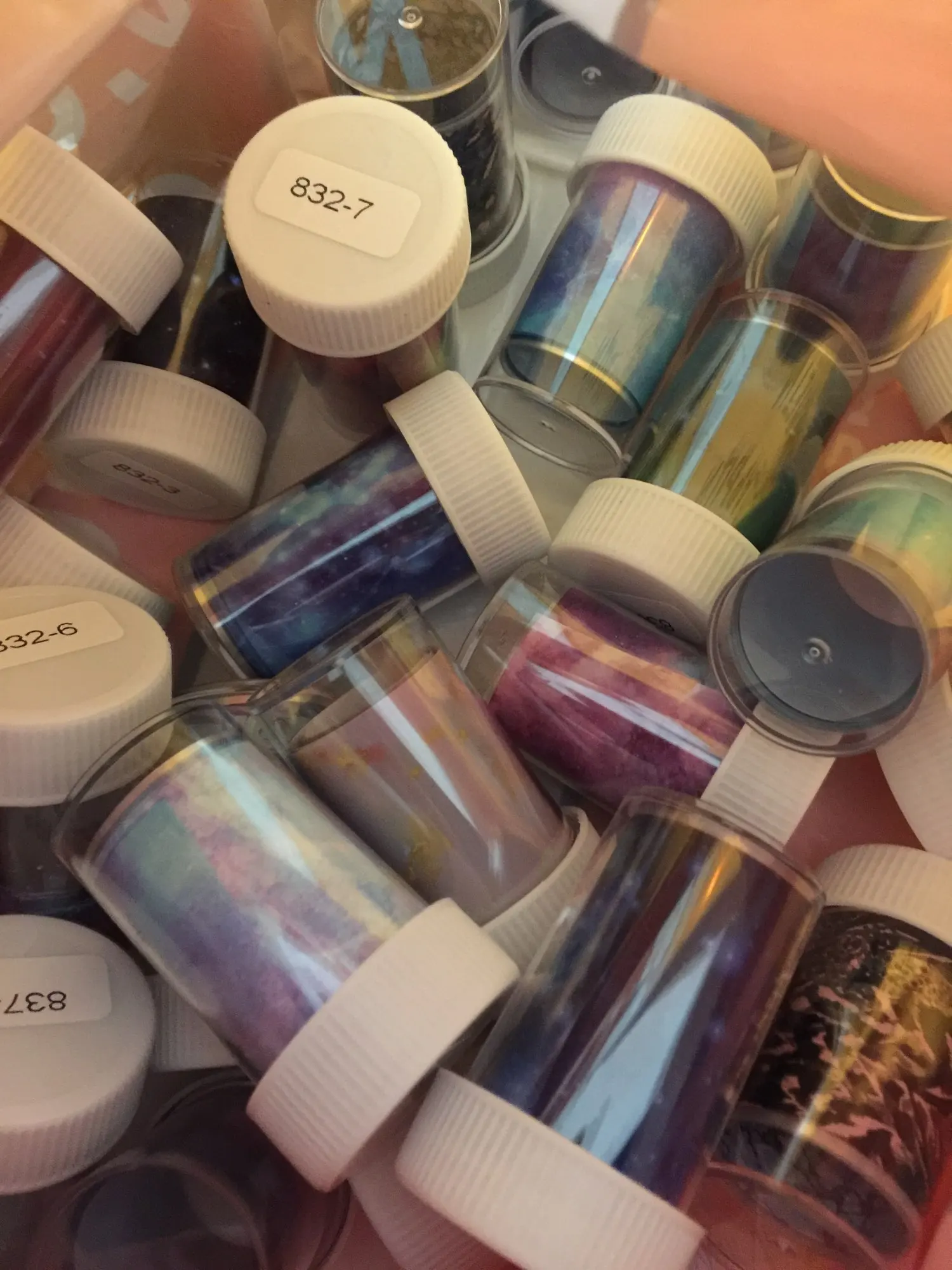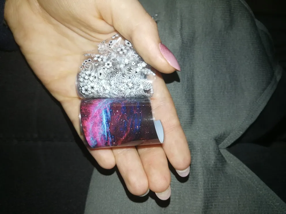 Пленка красивая, пока не пробовала в деле, но думаю все получится. Пришла каждая в индивидуальной баночке. Доставка до Москвы за месяц в сборной посылке.