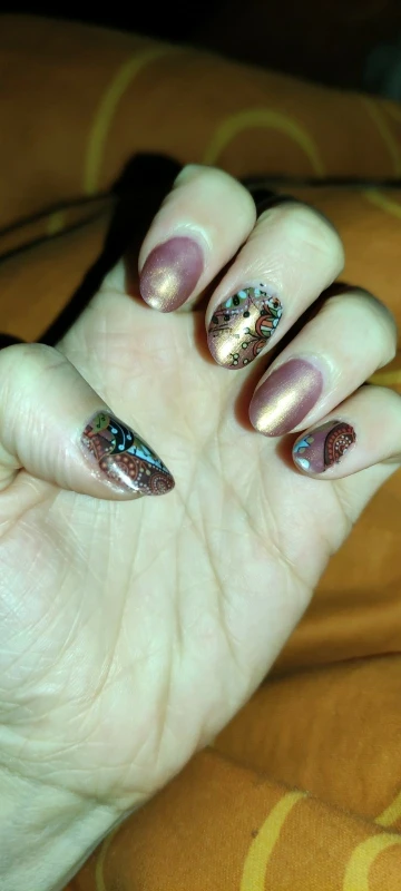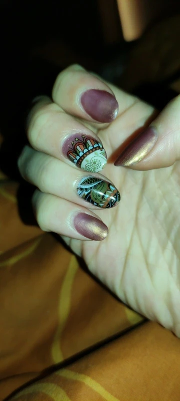 Рисунок красивый, отпечатывается хорошо. На тёмных ногтях получилось красиво. Большое спасибо. Продавца рекомендую.