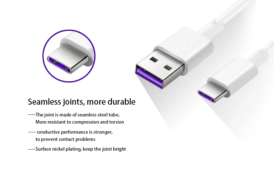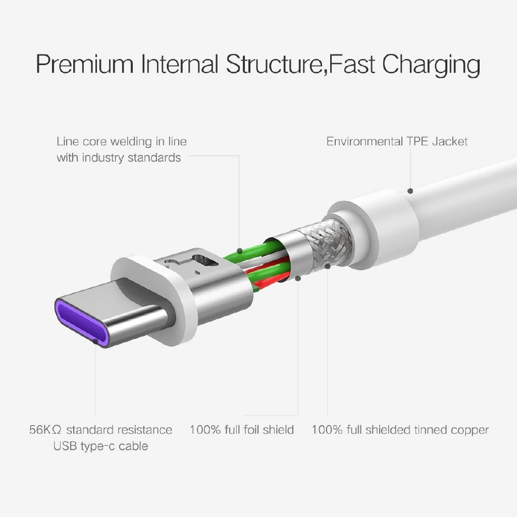 100% Оригинальный USB-кабель Huawei Type-C 5A для передачи данных, фиолетовый (белый), высокоточный, быстрая зарядка, многослойный, безопасность