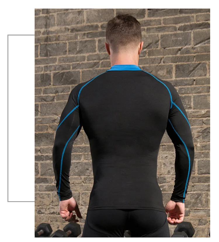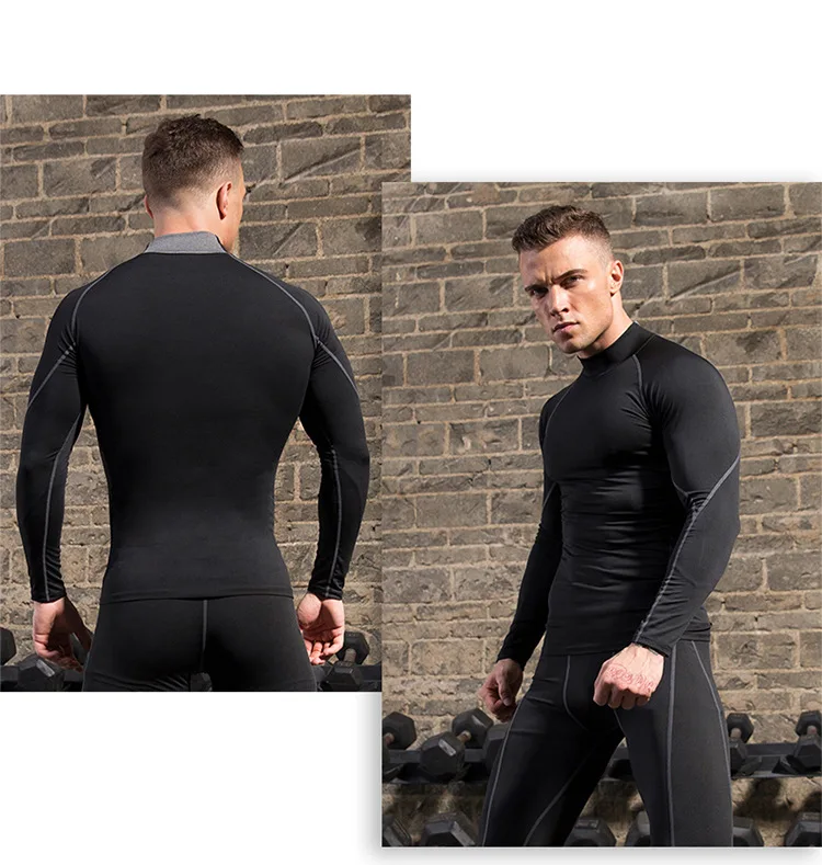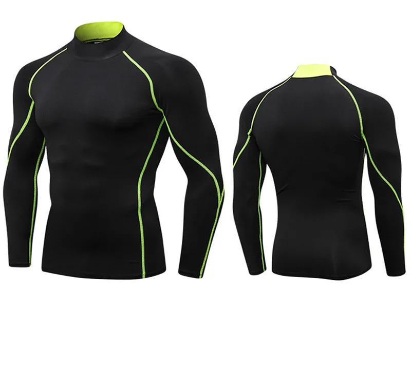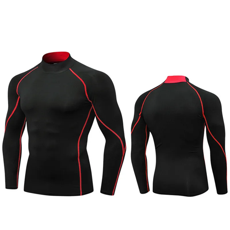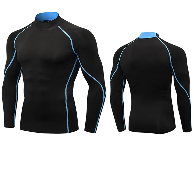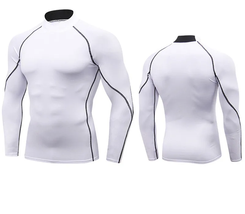 Компрессионные рубашки с высоким воротником для мужчин, Спортивная футболка для бодибилдинга, топ с длинными рукавами, футболка для тренажерных залов, Мужская облегающая футболка для фитнеса, Рашгард