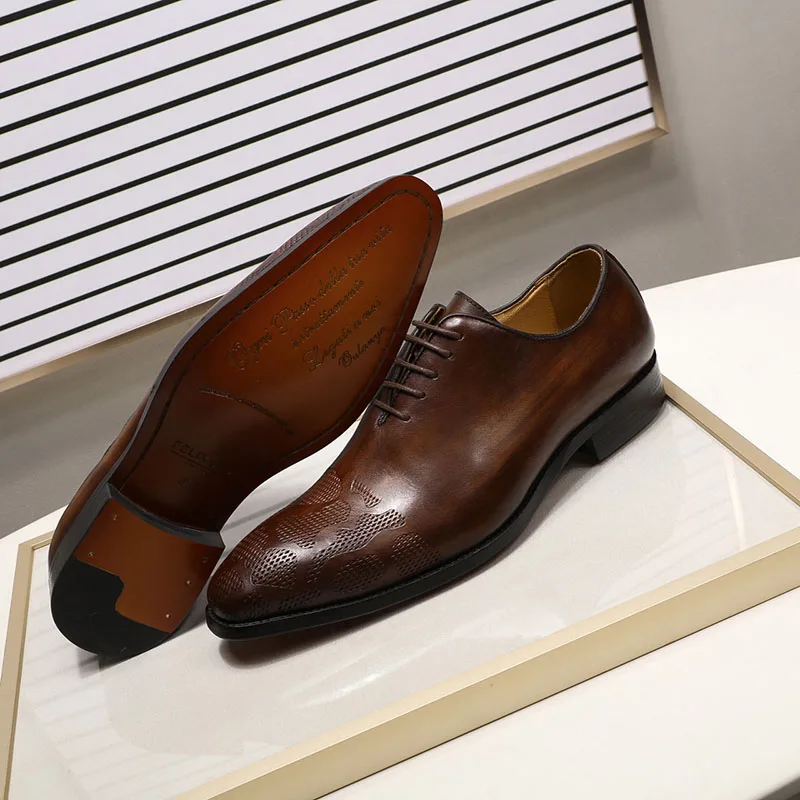 Брендовые итальянские мужские оксфорды, мужские классические туфли из натуральной кожи, коричневые свадебные мужские деловые туфли на шнуровке ручной работы icon star icon star icon star icon star icon star