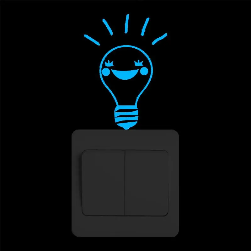 Забавная мультяшная лампочсветильник светящаяся наклейка с переключателем светится в темноте наклейки на стену для детских комнат декоративные флуоресцентные украшения для дома