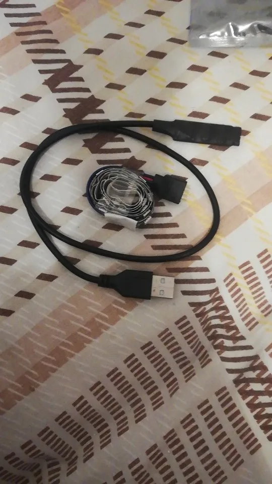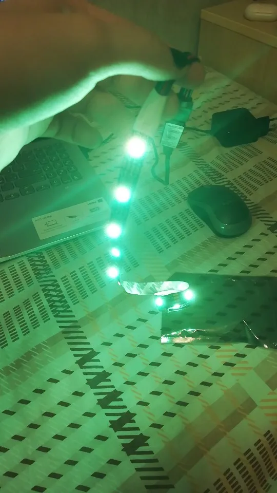 Доставка 3 недели (консолидация 8 в 1, Новая почта до двери). Предыдущий заказ не прибыл, в этот раз все ОК. Товар упакован просто в пакет. Изготовлено нормально, в некоторых местах защитная полоска отходит от клеящего слоя. 15 RGB диодов, место для разреза после каждого диода. Размер ленты 50х1см + провод 5см + около 40см USB провод c контроллером . Пульт ДУ имеет много настроек, яркость регулируется, диоды нагреваются не сильно. Продавец хороший, рекомендую. Delivery 3 weeks (consolidation 8 in 1, New mail to the door). The previous order did not arrive, this time everything is OK. The product is simply packed in a bag. Manufactured normally, in some places the protective strip comes off the adhesive layer. 15 RGB diodes, space for a cut after each diode. Tape size 50x1cm + 5cm wire + about 40cm USB wire with controller. The remote control has many settings, the brightness is adjustable, the diodes do not heat up much. The seller is good, I recommend.