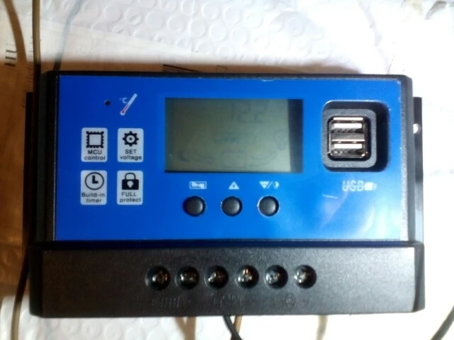 Товар прибыл нормально. Время доставки было очень, очень долгим. 72 дня. Упаковано хорошо. Качество товара с добротностью-только среднее! Дисплей очень плохой. Данные почти не видны спереди. Первая фотография. Только сверху дисплей более контрастный, но верхняя часть номеров напряжения не видна. Наклейка на передней части устройства приклеена в сторону. Так себе, что он предотвращает движения кнопок, и есть грязь под несколькими местами. Вторая фотография. Дисплей температуры не работает или работает неправильно. Он показывает 53 градуса Цельсия, когда температура окружающей среды 22 градуса Цельсия. Даже без нагрузки, даже после прямого включения. .... Третье изображение. К сожалению, солнечная панель еще не пришла, поэтому я не мог проверить ее работу. Я надеюсь, по крайней мере, это будет работать должным образом.... Немного разочарован ..