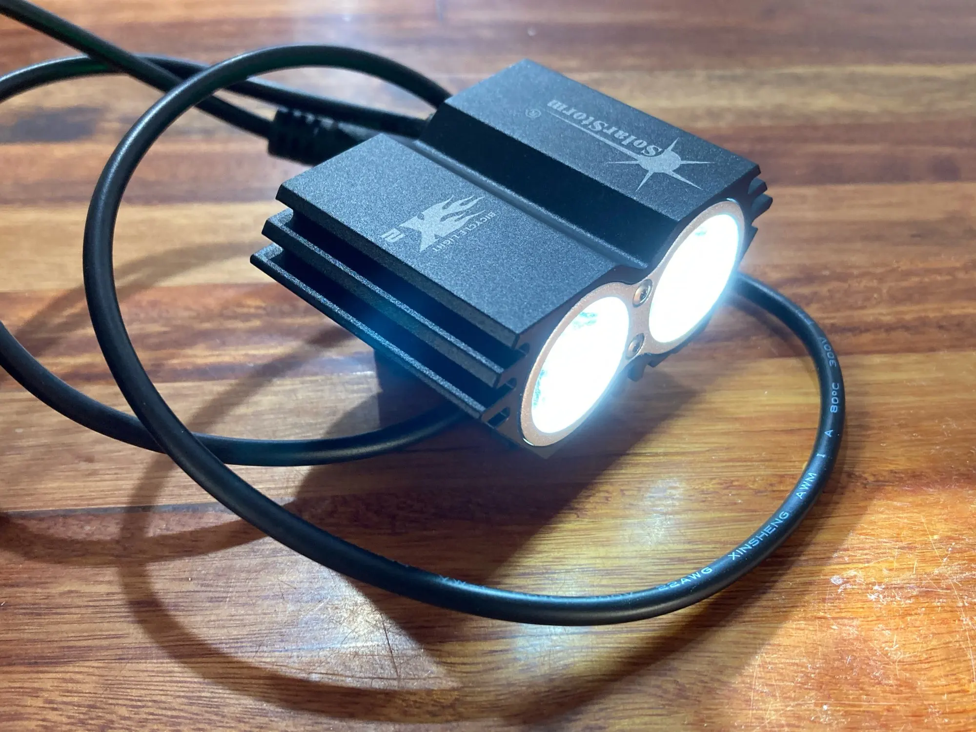 В течение ЕС пакет прибыл в течение 7 дней, так что я мог бы сказать довольно быстро. Упаковка (2 лампы) была хорошо упакована и продукты внутри хорошо защищены. Вечером я покатался по дереву и сделал несколько фотографий. Как некоторые уже указали в своих отзывах, мощность ламп не совсем 5000 лм (для сравнения, Первая фотография была сделана с налобным фонарем 120 лм, светящимся в дороге) но я должен сказать, что я доволен продуктом до сих пор.