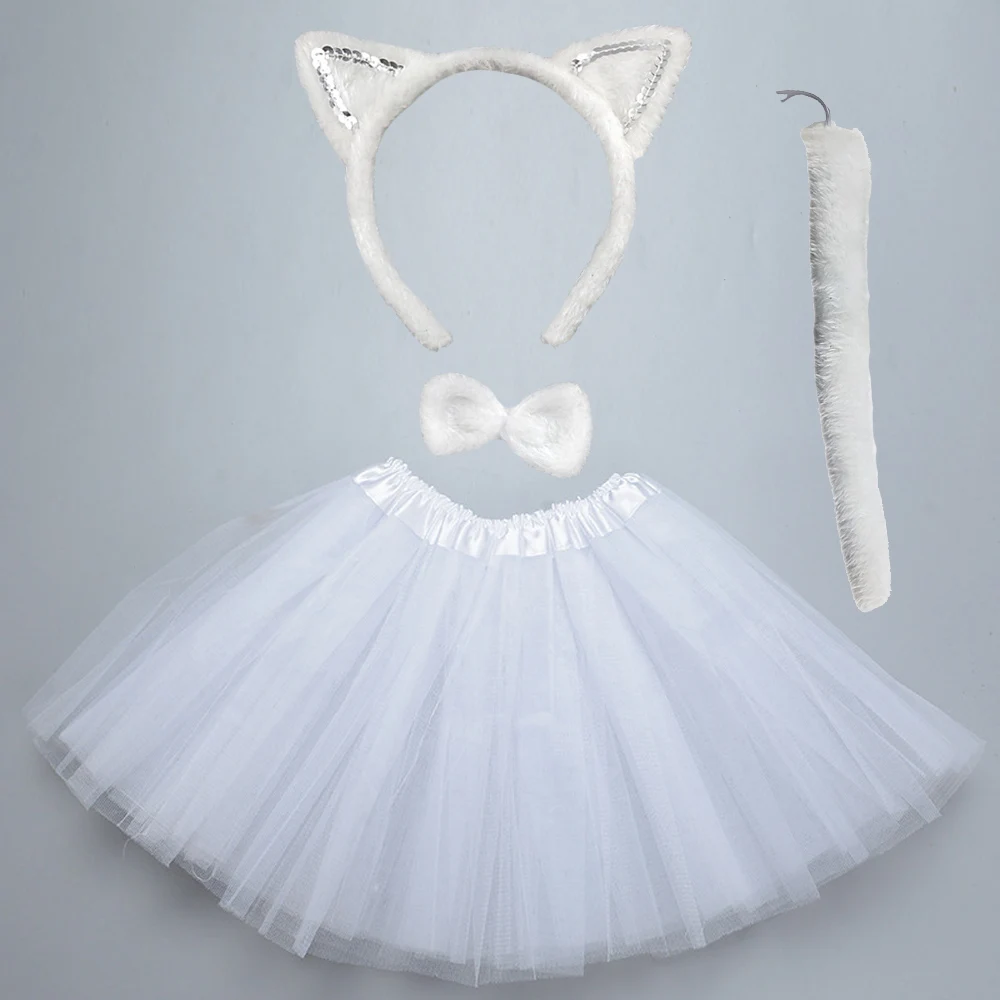Детский костюм кошки для дня рождения, розового, белого, черного цветов, повязка на голову, юбка, галстук-бабочка, перчатка, хвост, модное платье, реквизит для косплея на Пасху