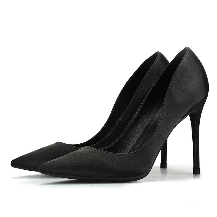 Женские туфли-лодочки; Женская обувь на тонком каблуке; Женские шелковые вечерние туфли с острым носком на высоком каблуке; Обувь без шнуровки черного размера плюс