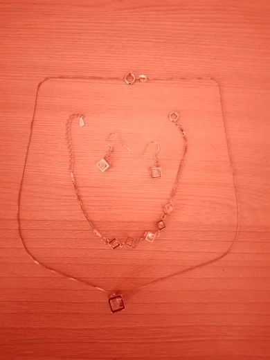 Очень понравился комплект. Цепочки только немного заламываются и на браслете и на шейной, но это особенность плетения. А смотрится красиво - камушки внутри квадратиков при хотьбе кувыркаются и очень красиво поблескивают.
