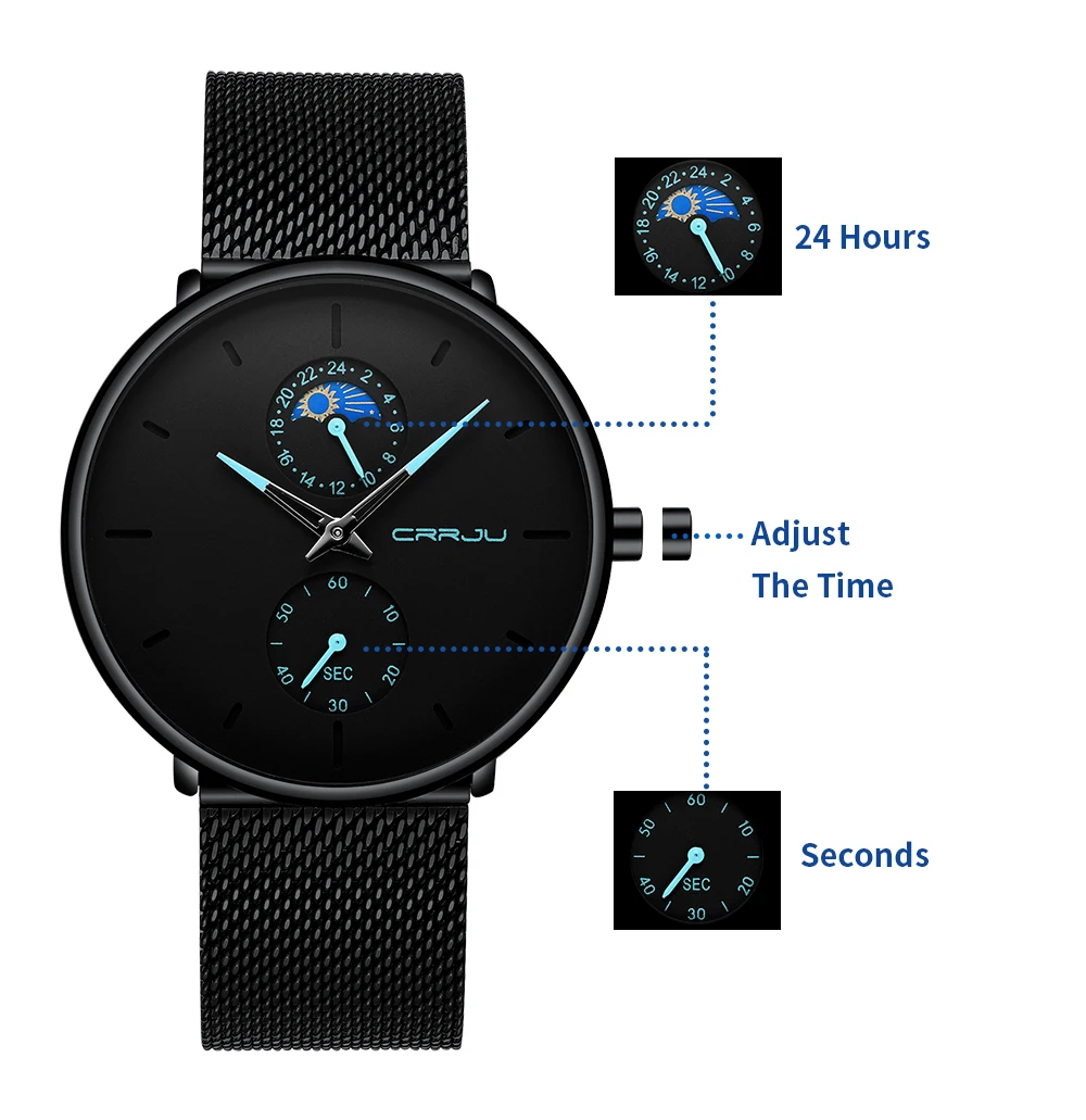Характеристики: Второй Циферблат, водонепроницаемость 30 м Размер: Длина ремешка: 24 см, Диаметр циферблата: 4 см, Толщина циферблата: 0,7 см, Ширина ремешка: 2 см Персональный маленький циферблат, лучше понять ваши потребности