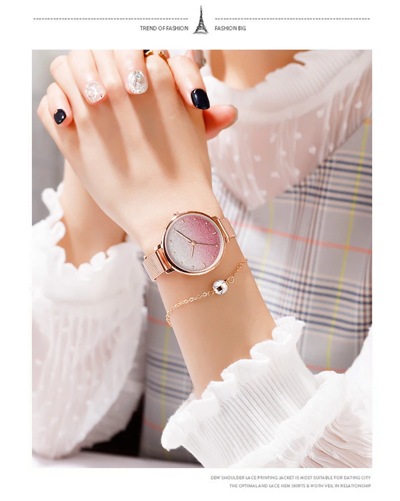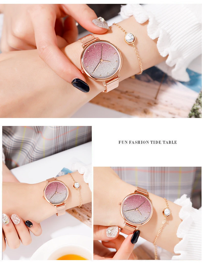 Часы наручные женские кварцевые, роскошные с металлическим ремешком, розовые Звездные повседневные спортивные, Прямая поставка