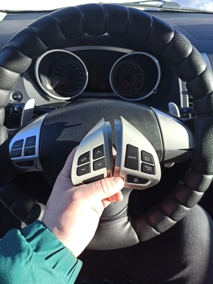 Серебряные кнопки переключателя круиз-контроля на рулевое колесо для Mitsubishi ASX Outlander XL 2007-2012 с наклейкой