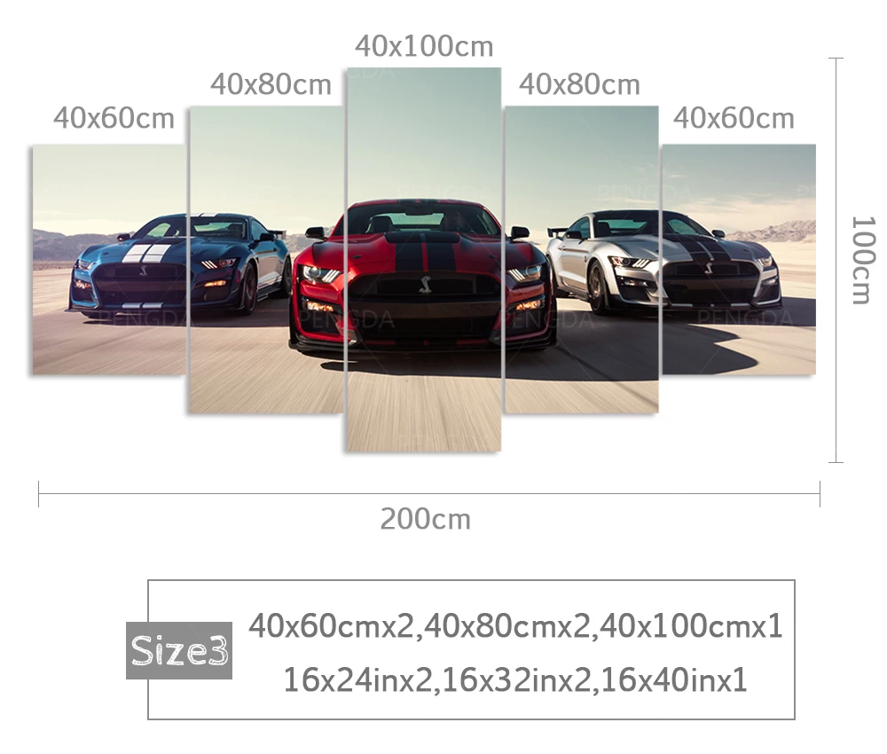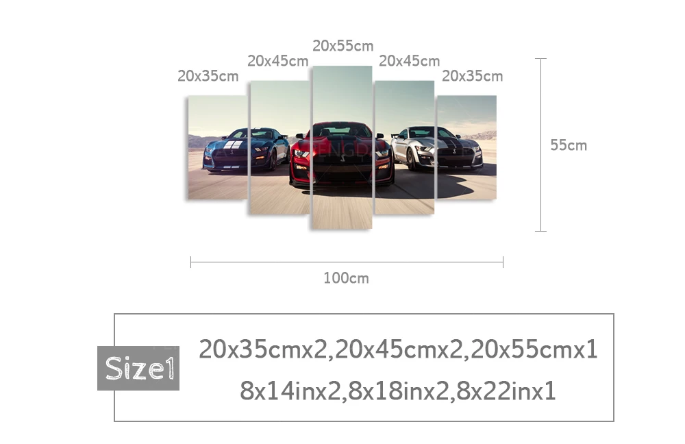 Модульные настенные картины на холсте, 5 панелей, роскошные автомобили Ford Mustang Shelby Gt500, домашний декор, плакаты, картина для гостиной