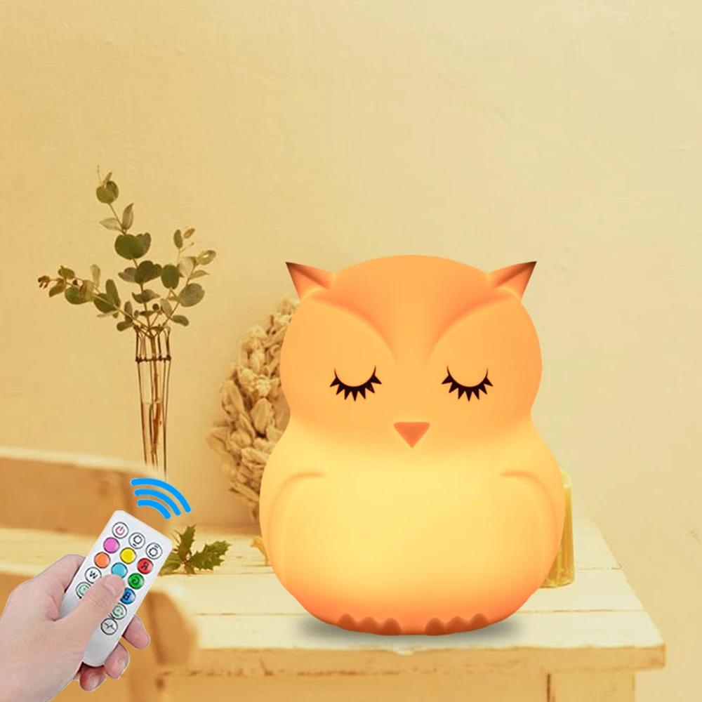 Птица Бегемот Сова светодиодный Ночной светильник сенсорный кран дистанционное управление 9 цветов перезаряжаемый таймер силиконовая лампа для животных для детей подарок для малышей