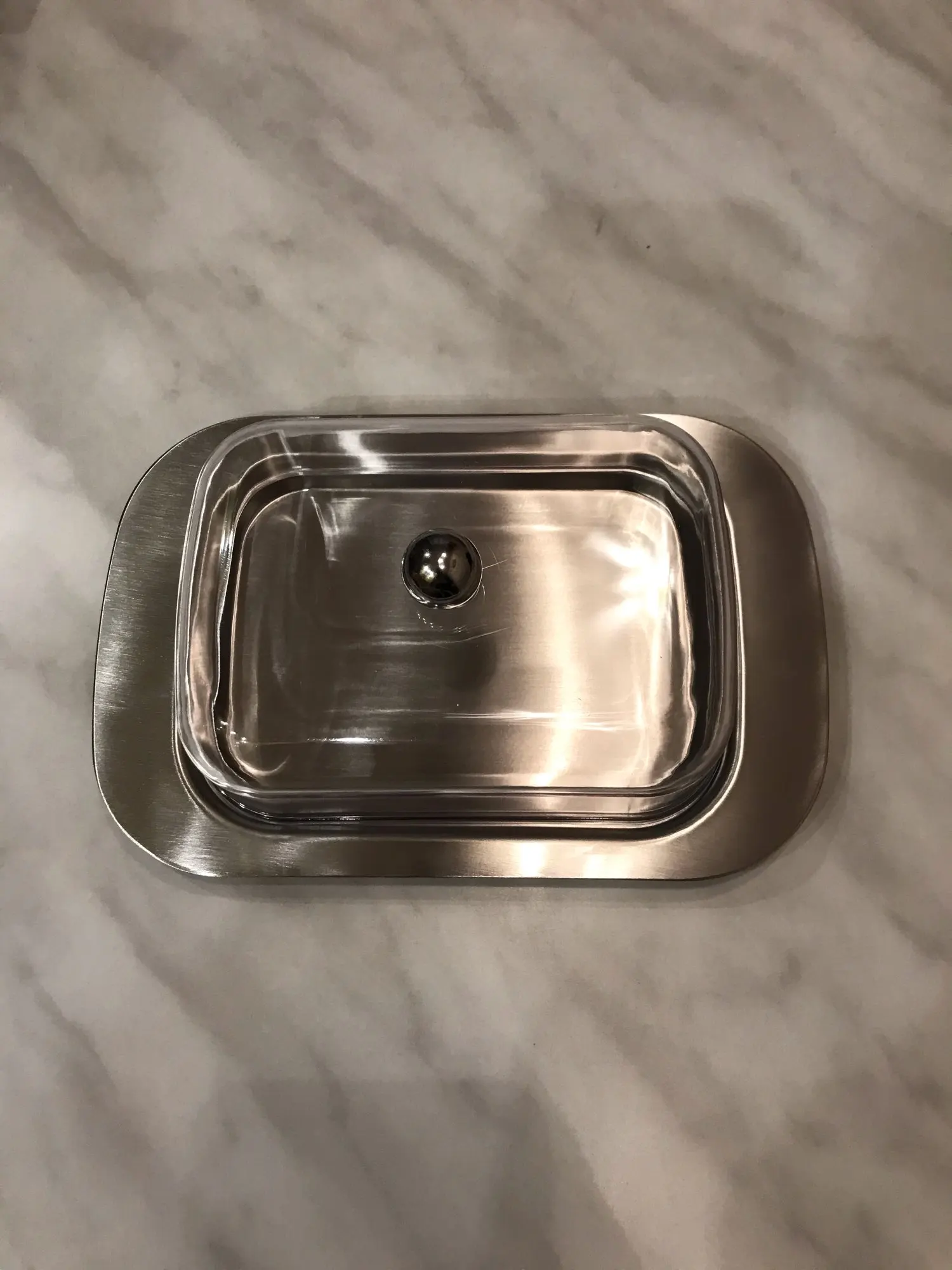 -Изготовлен из пищевой нержавеющей стали, прочный и простой в уходе.-Дизайн достаточно элегантный для любого обеденного стола и подходит для повседневного использования.-Дольше сохраняет масло свежее и подходящей консистенции для Растекания.-Небьющийся, можно хранить в холодильнике или морозилке.-Многоцелевое использование: используется для тортов, десертов, хлеба и хранения небольших фруктов, подходит для отелей, ресторанов, буфета, баров и т. д.