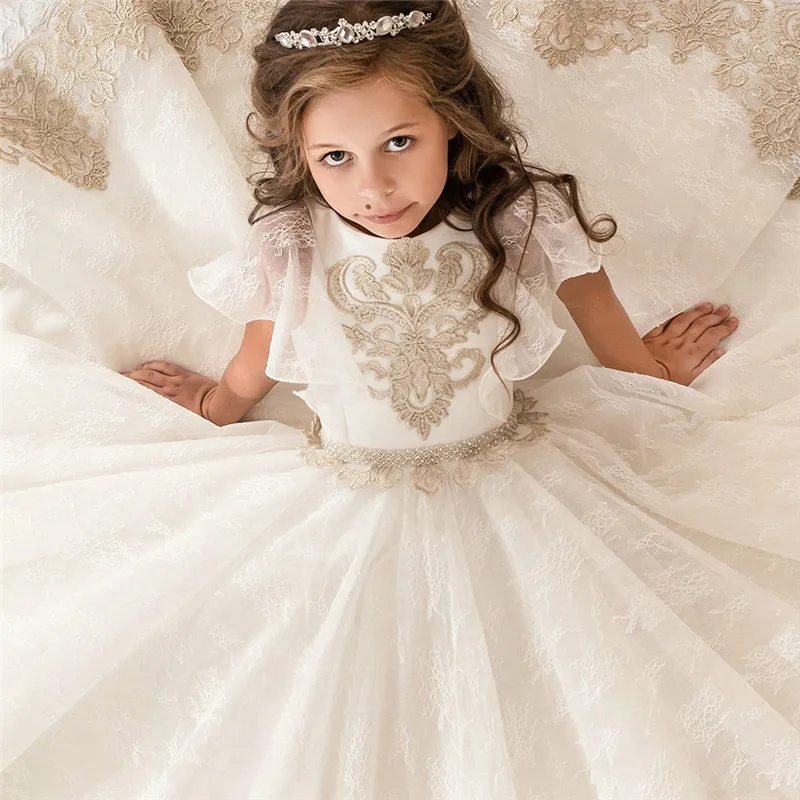 Детское кружевное платье с вышивкой, новинка 2022, платье принцессы для девочек, элегантные костюмы для хозяйки, свадебные платья со шлейфом