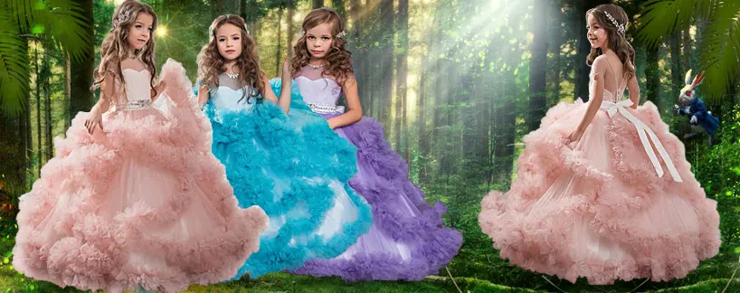 Цветочные платья для девочек с круглым вырезом, искусственное бальн...
