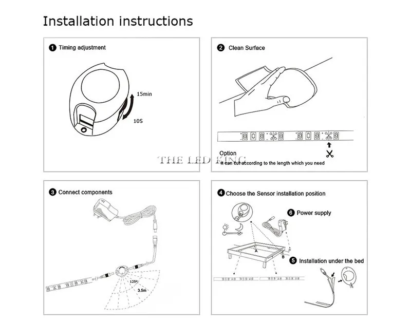 Цветовая температура: теплый белый 3500K/белый 6500K Вход: 85-265VAC 60 Гц Выход: DC 12V 1A/2A Время задержки выключения: 30 с/10 мин Сенсор расстояние: ≤ 3,5 м Угол датчика: ≤ 120 ° Управление: окружающий светильник, автоматический мониторинг и функция датчика PIR в темной среде Потребление энергии: 6 Вт О длине: 1. Светодиодный светильник: 1 м/2 м/3 м/4 м/5 м 2. Кабель постоянного тока на адаптере: 1 м 3. DC кабель на ленточный светильник: 10 см Примечание: датчик работает только в темноте
