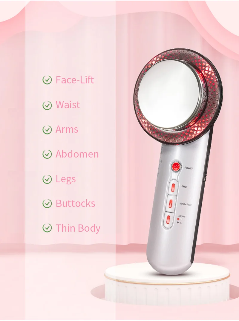 Эффективный Ультразвуковой косметический массажер для лица и тела. EMS лечение для похудения кожи и тела. Устройство инфракрасной термотерапии для омоложения кожи. Улучшает текстуру кожи, против морщин, помогает бороться с жирными участками, подтягивает. Быстро и эффективно уменьшает и облегчает тяжелые хронические боли в спине, другие боли в теле. Регулирует внутреннюю секрецию и ускоряет потребление жира, реализует мечты о похудении. Миниатюрный и стильный внешний вид, удобно носить с собой, легко использовать. Для лица и тела