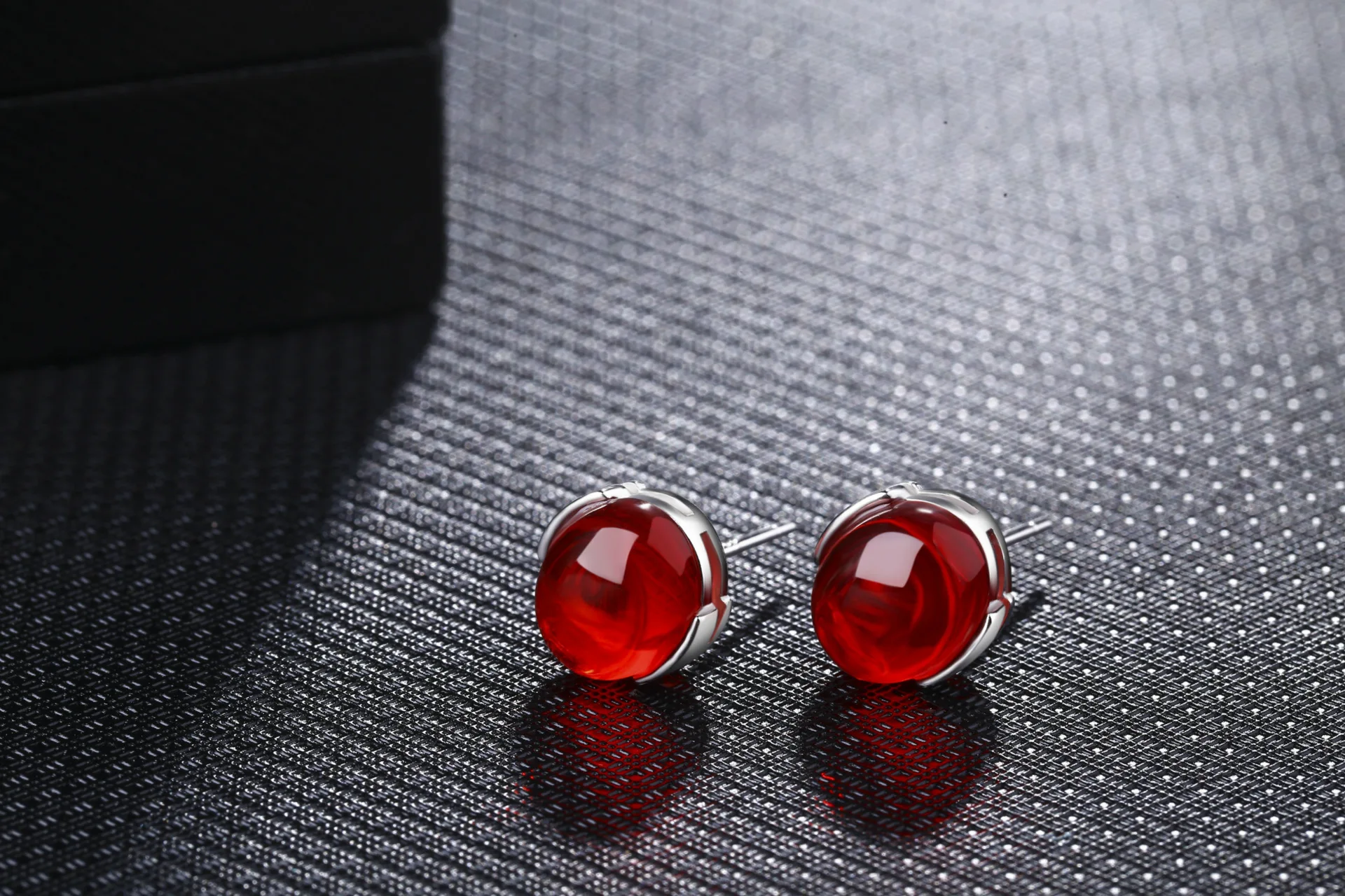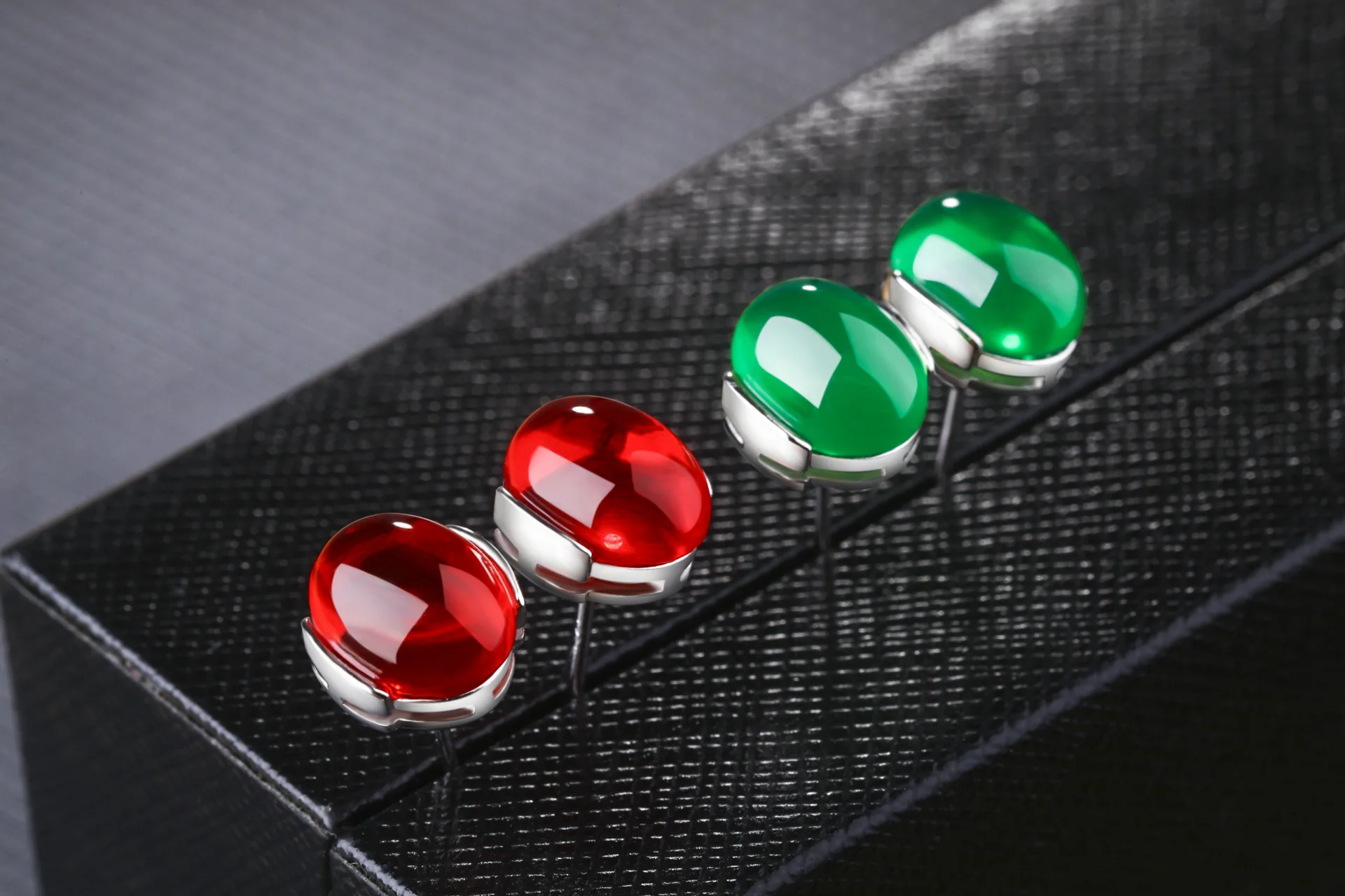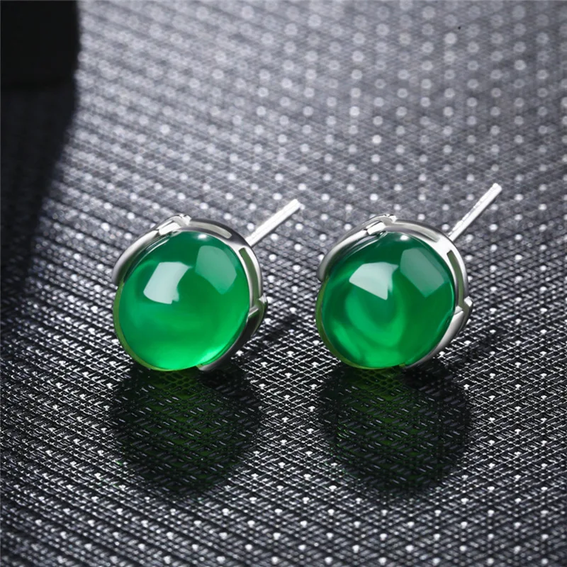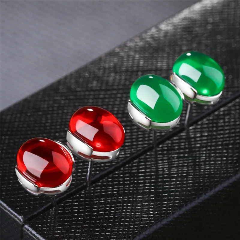Женские этнические серьги-гвоздики из серебра 925 пробы с красными и зелеными камнями
