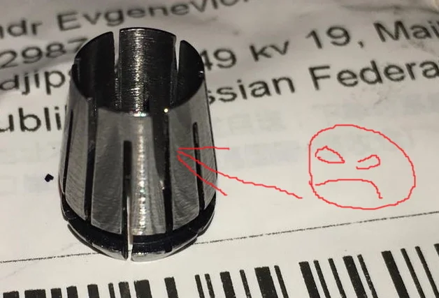 Посылка пришла быстро в объединенной посылке. Но обещанного качества в 8 микрон не ощущается. Во первых, полупрозрачная квадратная коробочка как у обычных цанг (ранее получил такую же от другого продавца - обычная цанга). Во вторых, качество шероховатости поверхности не соответствует классу точности. По всей поверхности риски от грубой шлифовки. Только половина длины внутреннего диаметра цанги имеет более гладкую поверхность. Скорее всего проходила предпродажную подготовку шкуркой. ТАК КАКУЮ ЦАНГУ СЧИТАТЬ ПОВЫШЕННОЙ ТОЧНОСТИ, КАК И ГДЕ ЭТО ОПРЕДЕЛИТЬ НА ИЗДЕЛИИ?