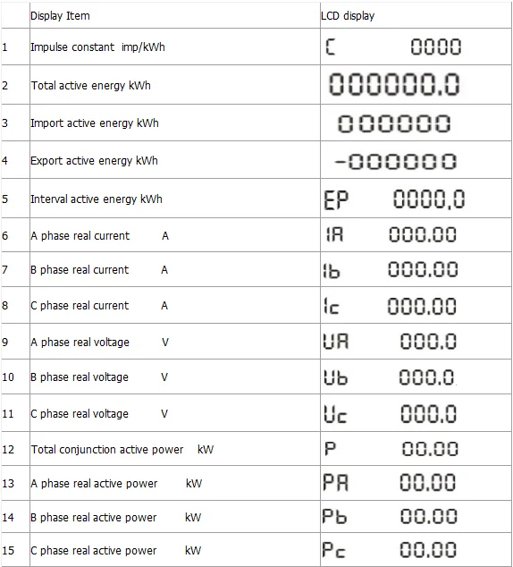 Примечание: для подключения входного типа CT дисплей потребляемой мощности в регистр не является фактическим потреблением энергии. Фактическая мощность = индикатор питания в регистр скорости X CT. К примеру, отображения мощности в реестре является 0,5 кВт и КТ 800/5A тот факт, потребляемая мощность = 0,5 кВт X 160 = 80kWh