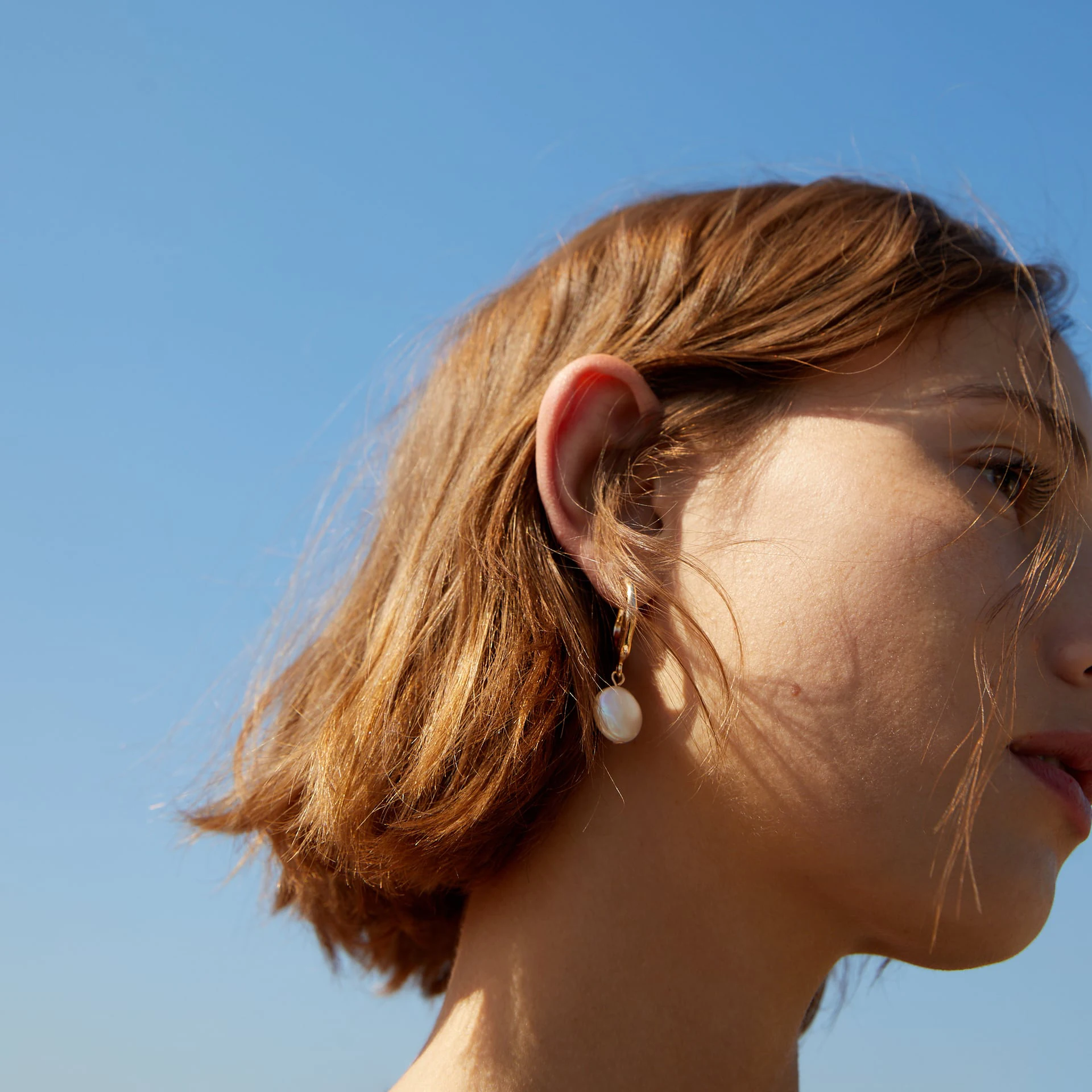 Fashion EarringsWomen za jewelry gold Tiny Pearl Hoop earrings