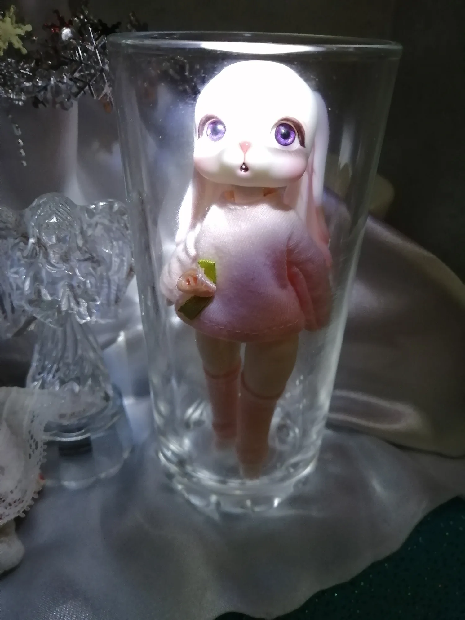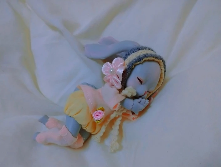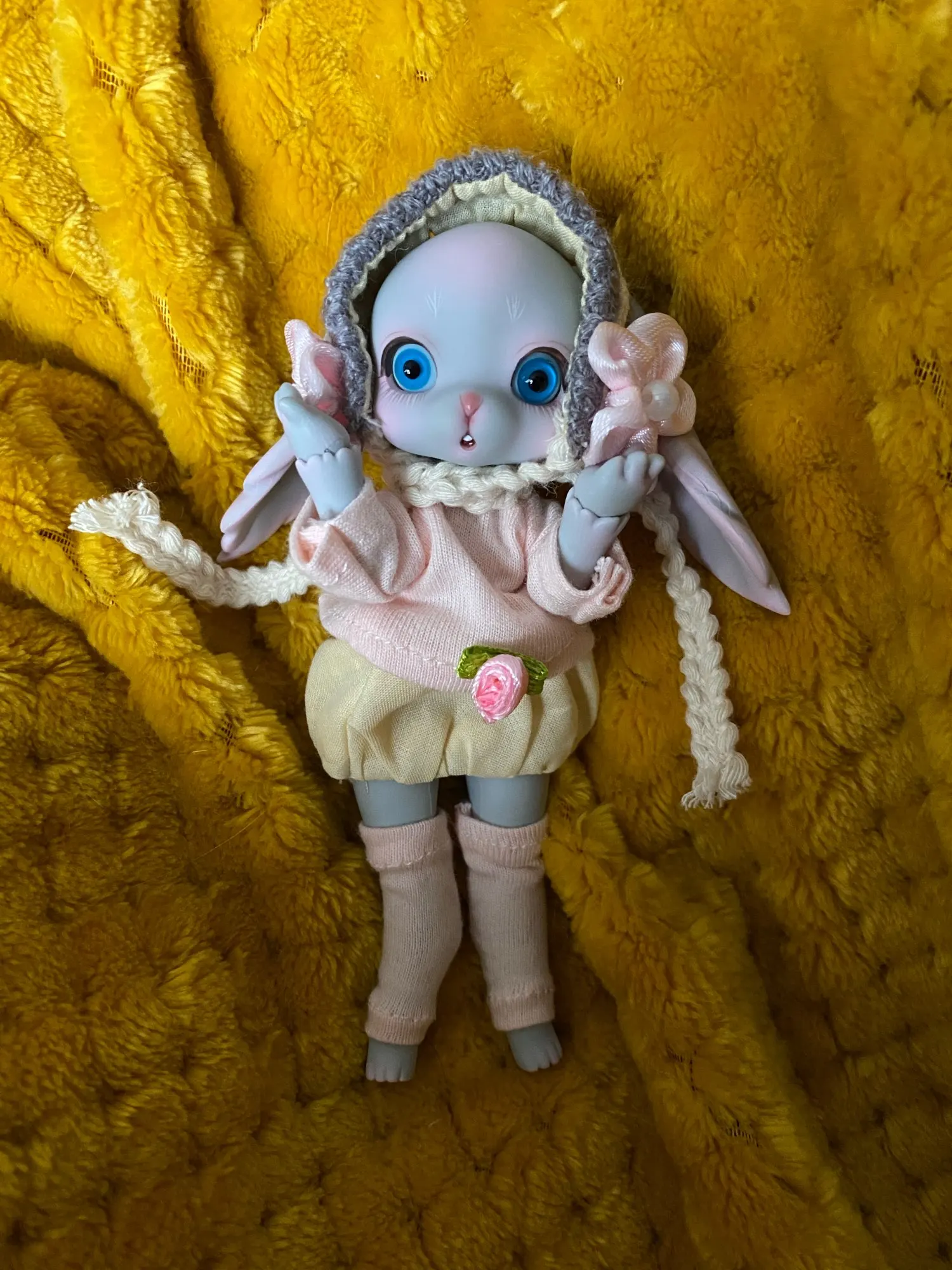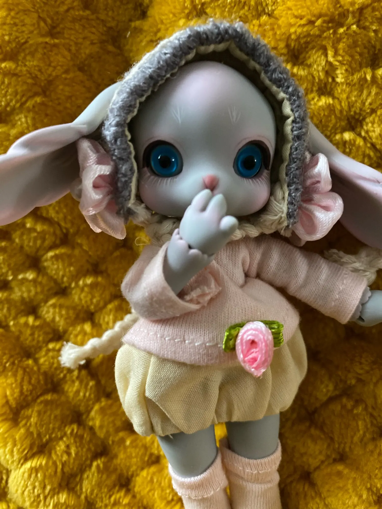 чудесный кролик, белоснежный, на ощупь приятный, макияж потрясный. В комплекте спящая готова, губка и дополнительные лапки. Карие глаза, как я и просила. Я более чем довольна! Большое спасибо за эту прелесть