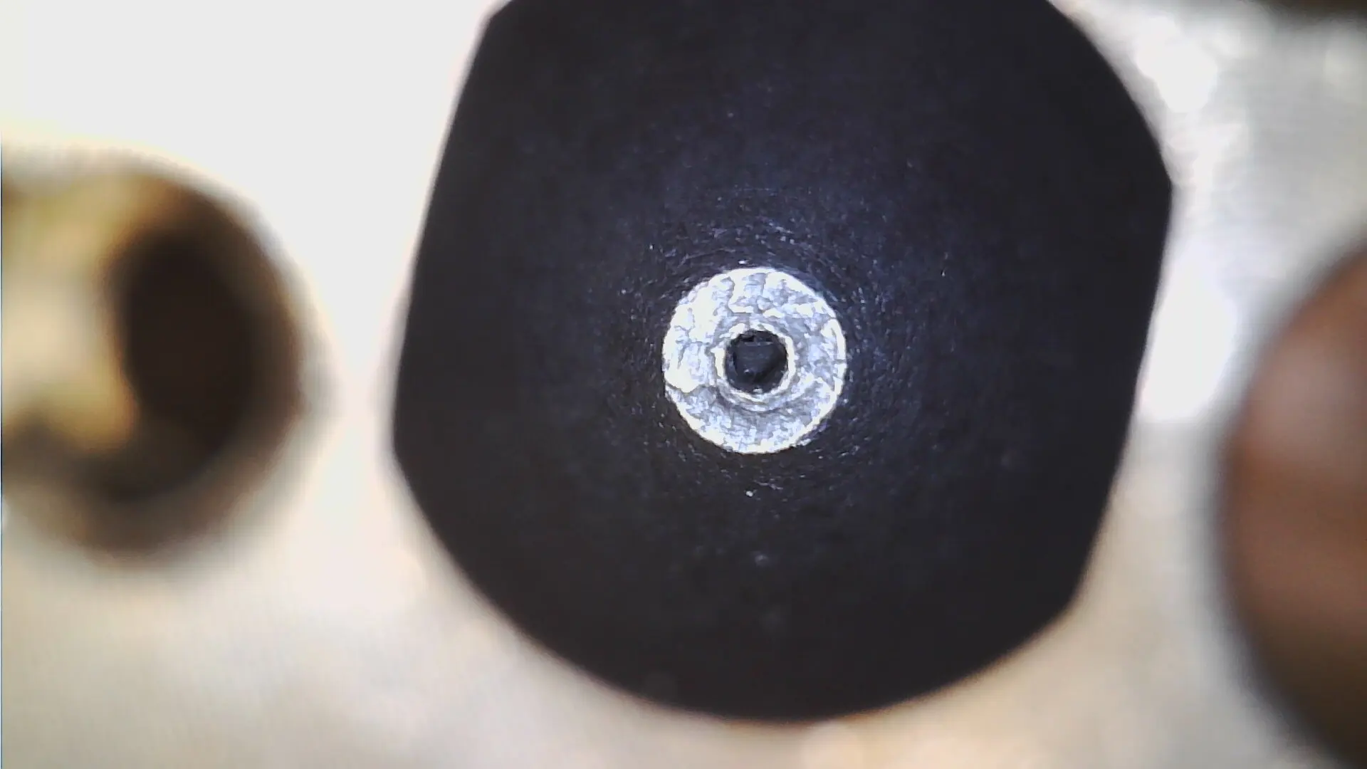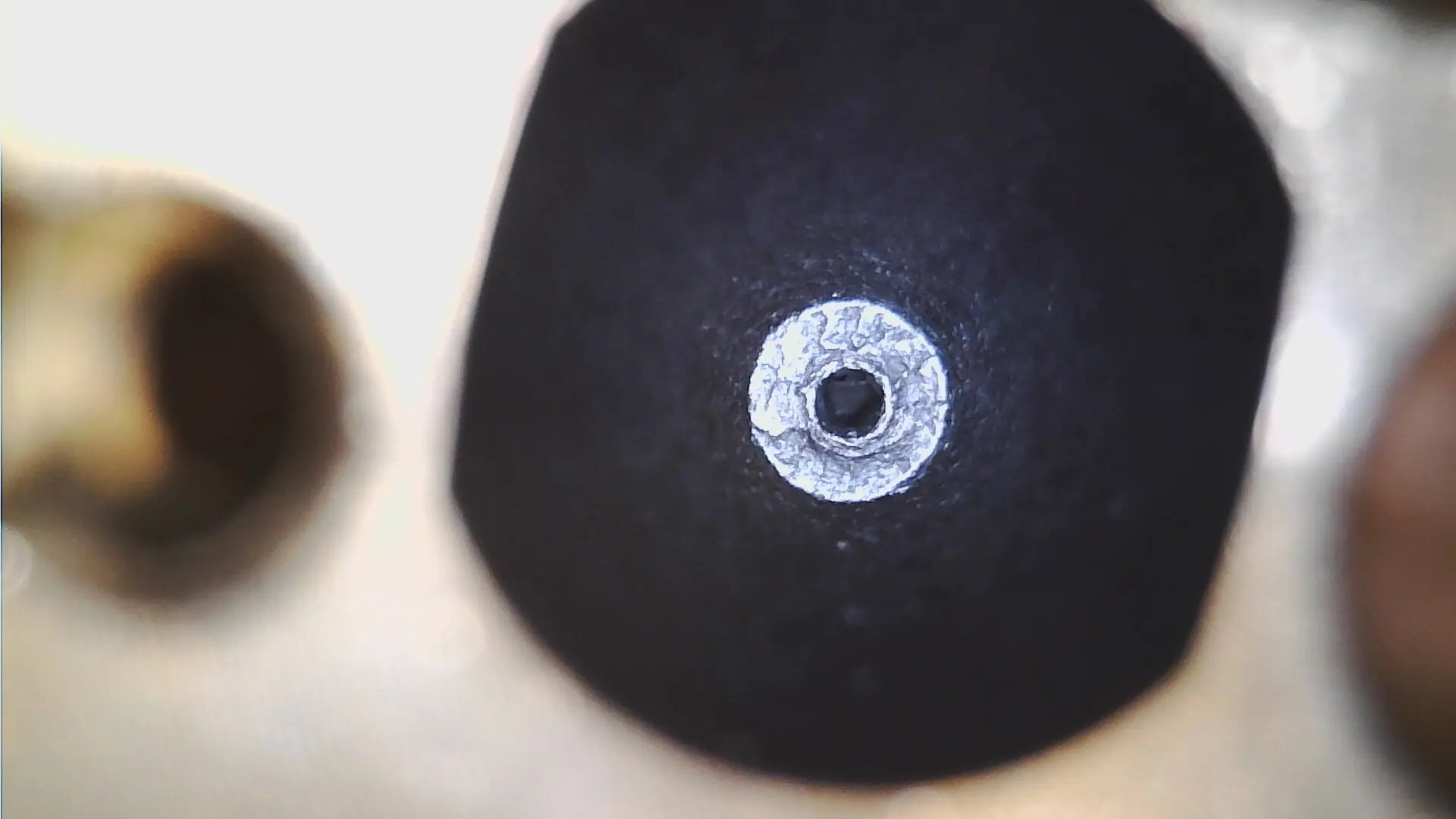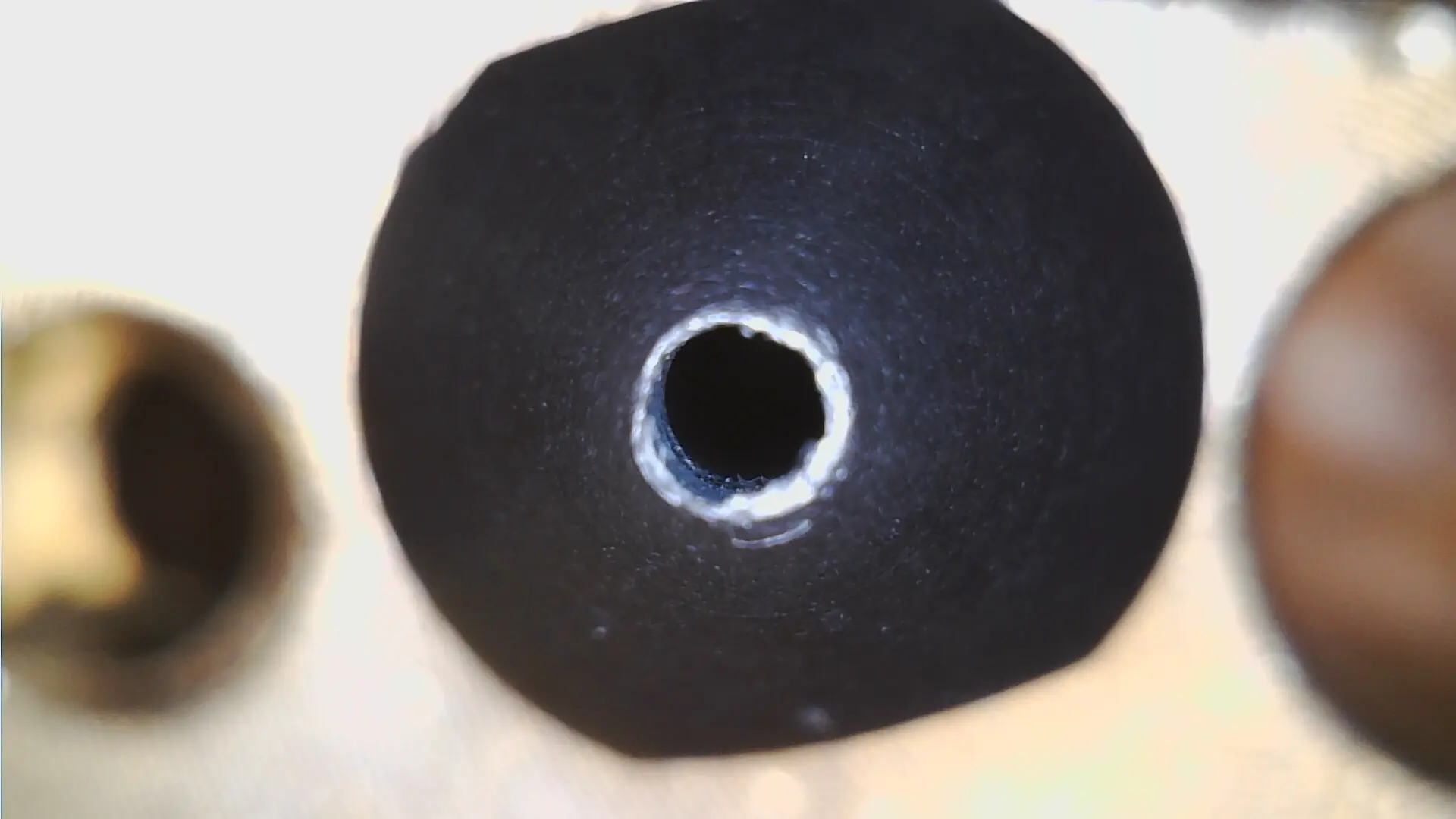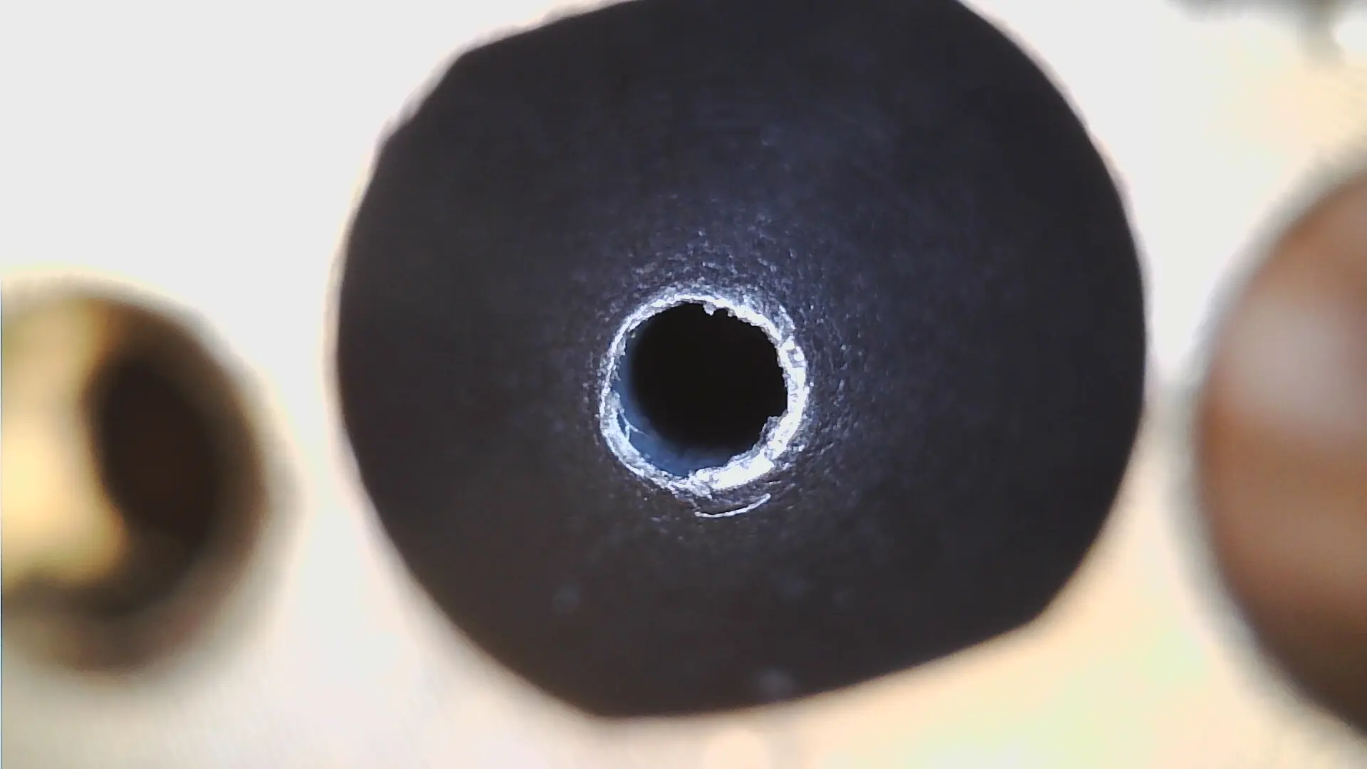 Сопло действительно калёное (надфиль не берёт), качество отверстия приемлемое, но к сожалению, кажется канал забит окалиной или стружкой (на фото видно). Если не удастся очистить, пользоваться будет невозможно.