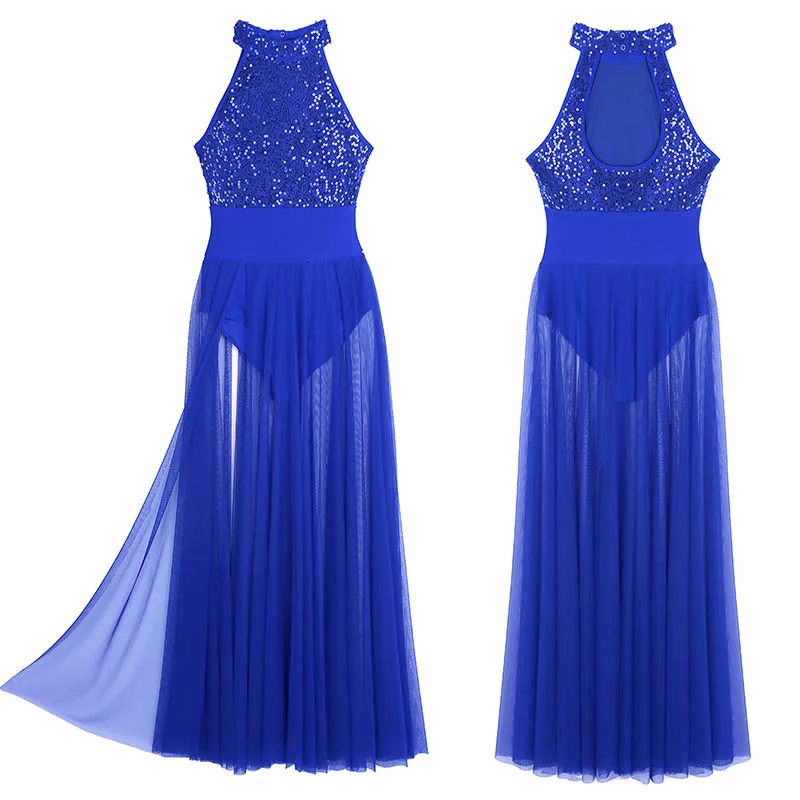 TiaoBug, женское длинное балетное платье-пачка с блестками, Сетчатое длинное платье для Бальных выступлений для взрослых, современное костюмы для лирических танцев