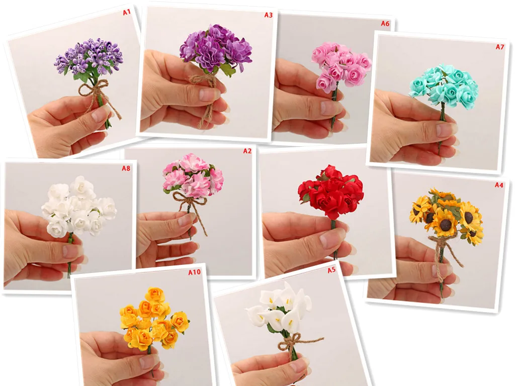 10 видов стилей ручной работы поддельный фиолетовый Лавандовый букет Подсолнух Калла кукла "Лили" искуственные цветы для декора для кукольного дома Гвоздика Роза
