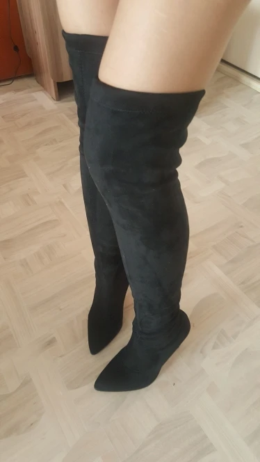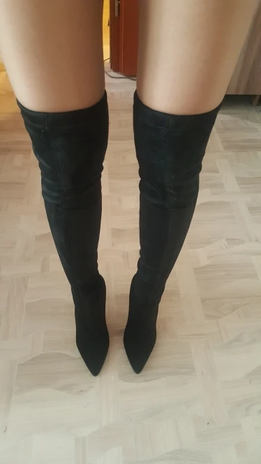 Когда заказывала сапоги, была уверена, что с ними что-то будет да не так. Очень смущало, что нет молнии, надевать будет неудобно. Но нет. Все оказалось куда радужней! На рост 165, худенькие ножки- сапоги сидят идеально. Идеальная длина - ни коротко, ни длинно, под разные платья. Хорошо все прошито, толстая ткань. В целом выглядят очень даже достойно Надевать тоже нормально, не так тяжело, как представлялось. При ходьбе не сползают. Единственный маленький минус - каблук все-таки высокий и в сапогах не «как в кроссовках». Но это уже дело вкуса. Я всю жизнь на разных каблуках хожу, в этих чуствую можно половину вечера только продержаться. На размер 38,5, широкую стопу взяла 39. Все подошло! Думаю, ещё разносятся и будет вообще отлично. Сапожки рекомендую. За такую цену лучше не придумать! Пришли до Москвы за 20 дней.