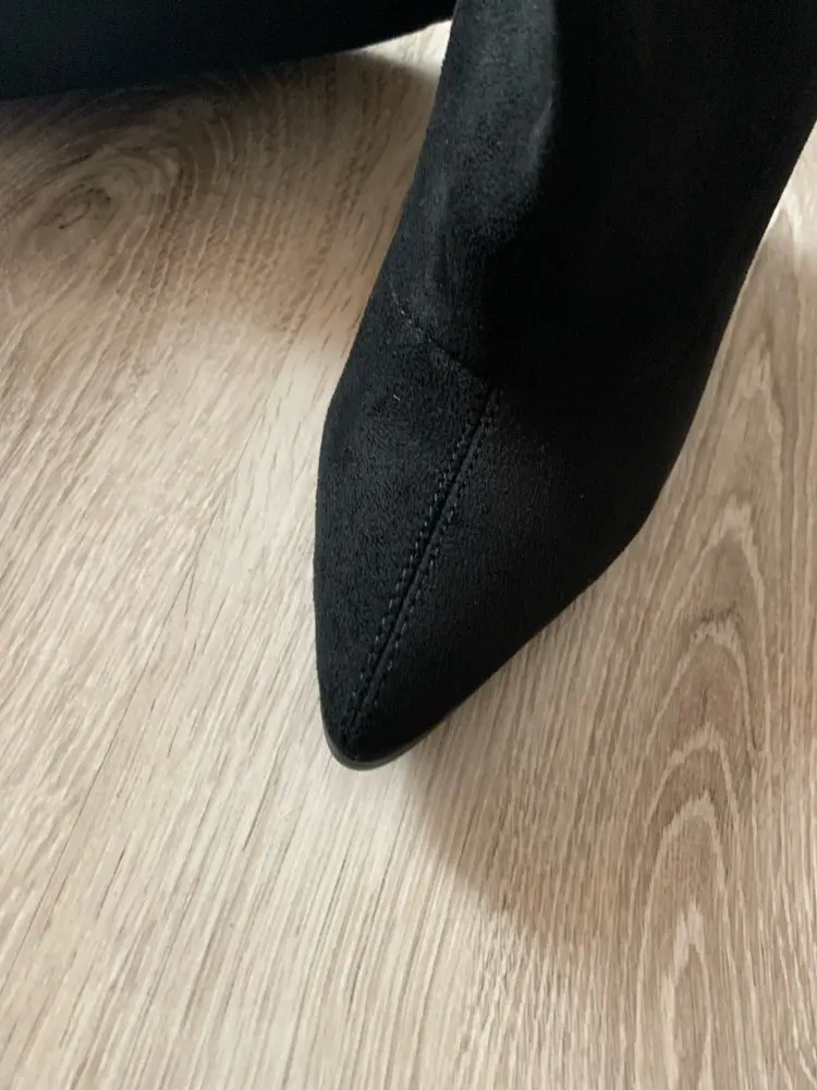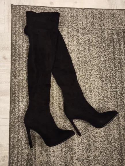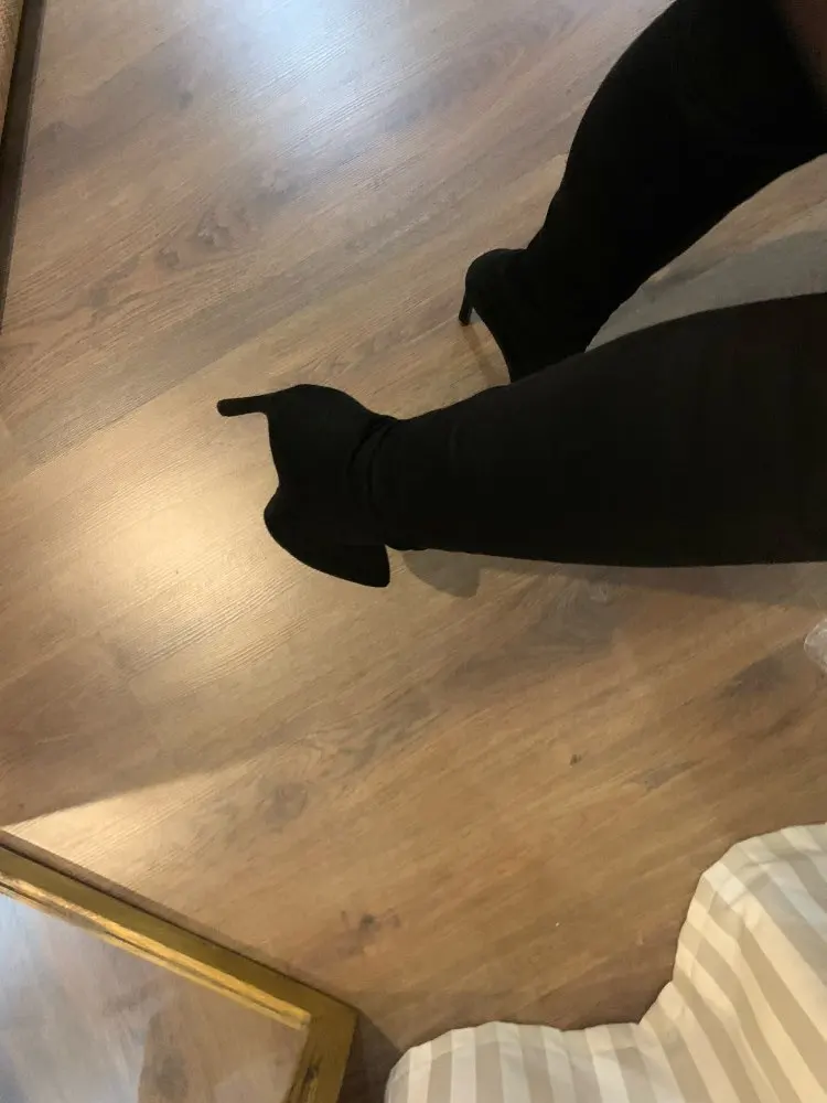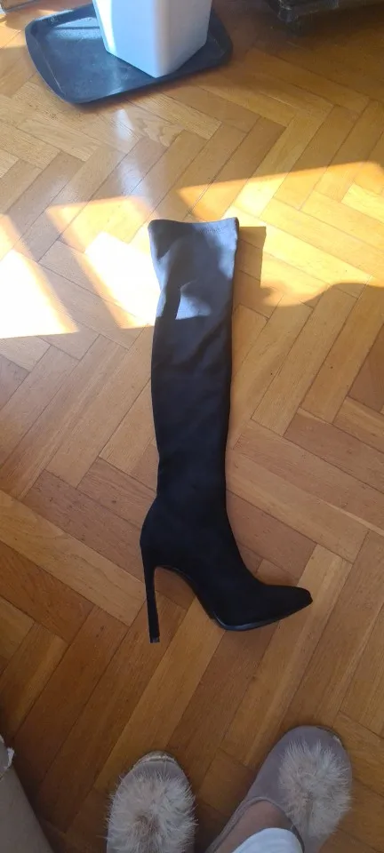 Сапожки хорошие. Тканевые, внутри мягенькие. На мою ножку 24.5 немного большеваты. Но у меня тонкая нога, возможно поэтому. Каблук очень высокий и колотка не особо удобная. Но на выход, эффектно где то появиться можно взять)
