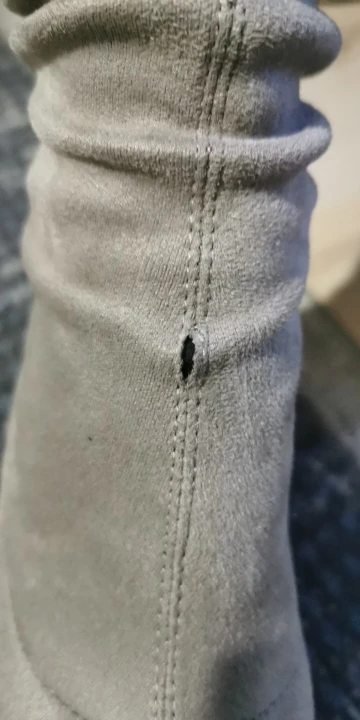 Сапоги хорошего качества,цвет ровный,под замшу,недостатков по качеству нет.Но на мой четкий 38 российский размер стопы,заказанный 7 размер (24см)оказался туговат.