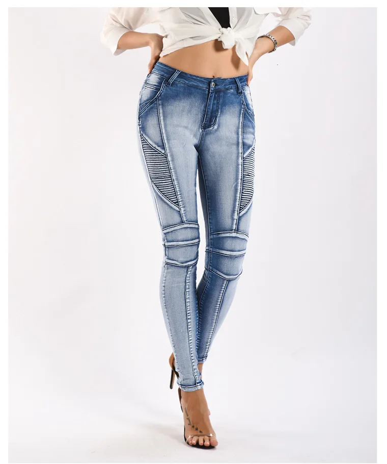 Женские байкерские джинсы, эластичные облегающие джинсы со средней талией, модель размера плюс #73
