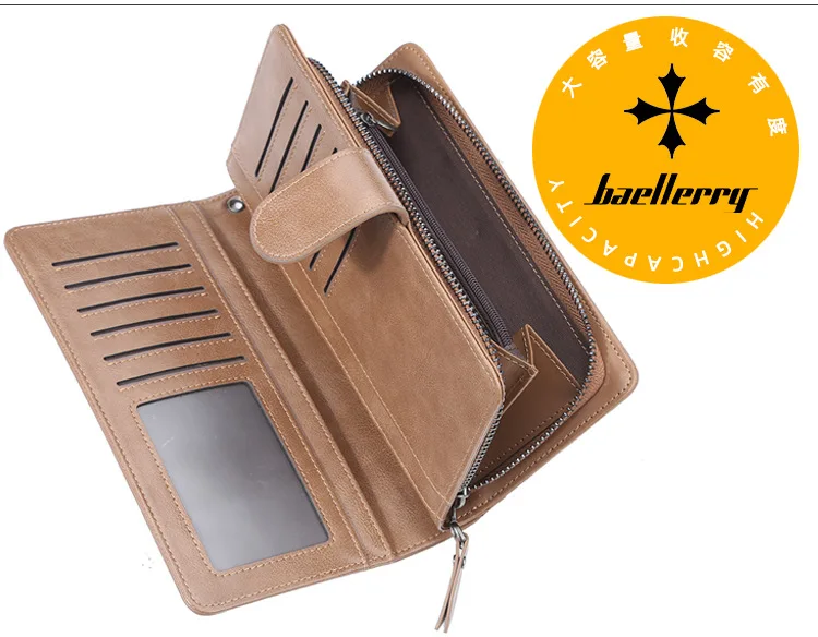 Мужской кошелек Baellerry, стильный длинный кошелек на молнии, большой емкости, держатель для карт