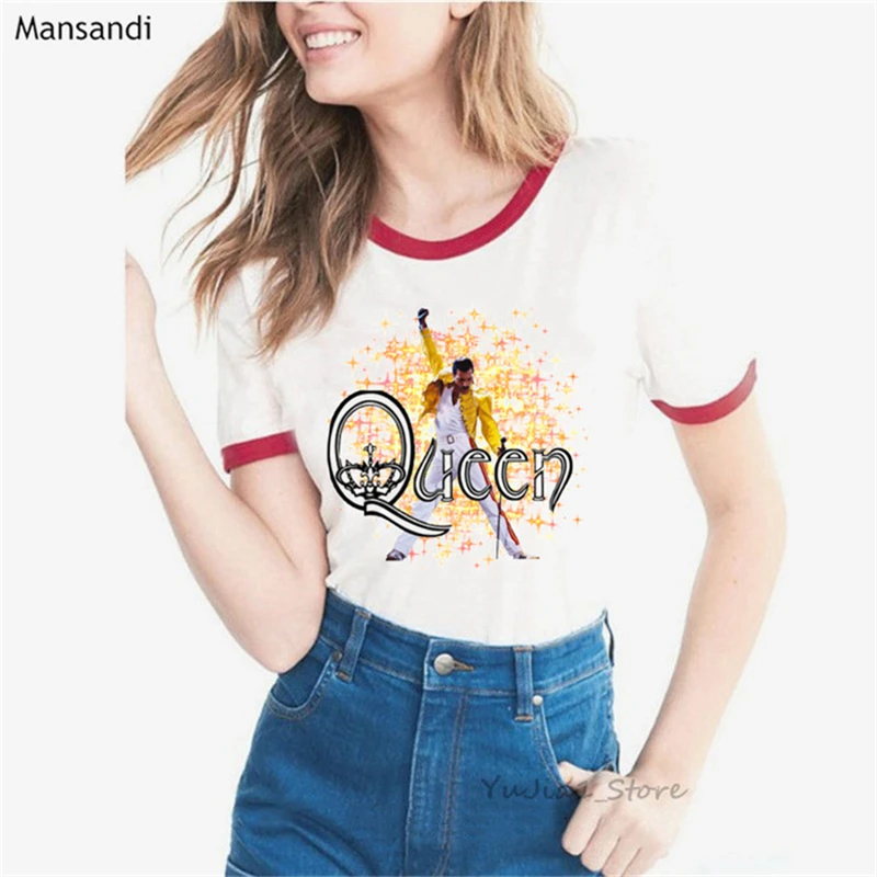 Женская футболка с принтом Фредди Меркури, летние топы с принтом Qu...