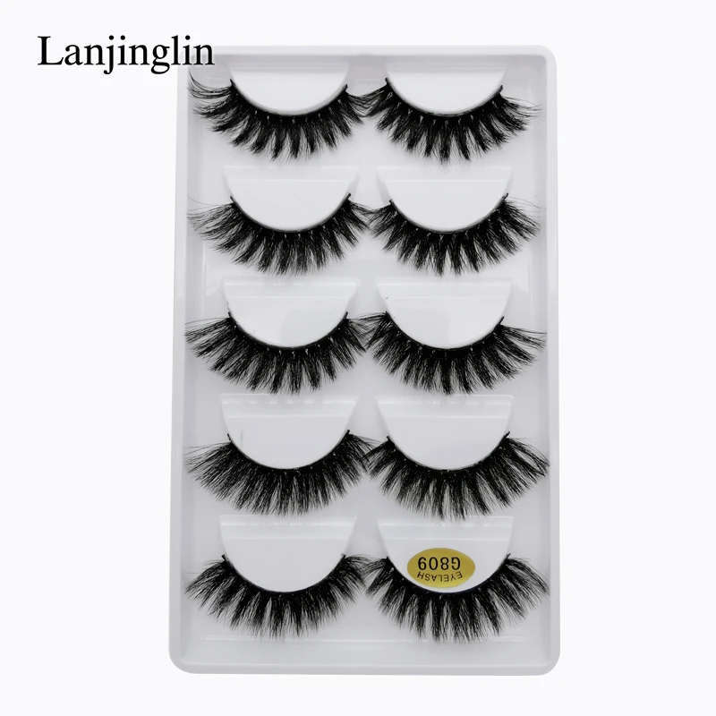 LANJINGLIN, норковые ресницы, натуральные длинные накладные ресницы 100%, мягкие 3d норковые ресницы ручной работы, искусственные ресницы для макияжа G806, 10 коробокпартия
