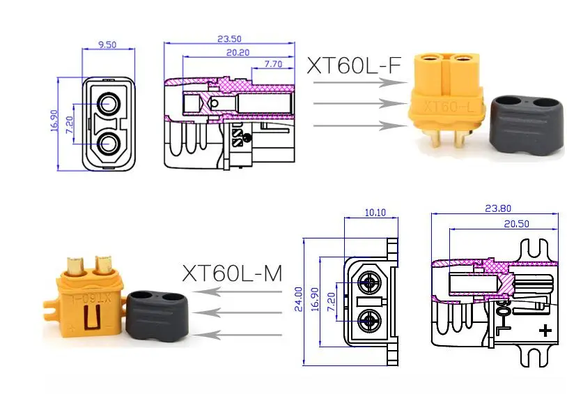 Разъемы Amass XT60L 100, XT60-L штекеров, с корпусом в оболочке, мужские и женские, запасные части для самостоятельной сборки моделей RC