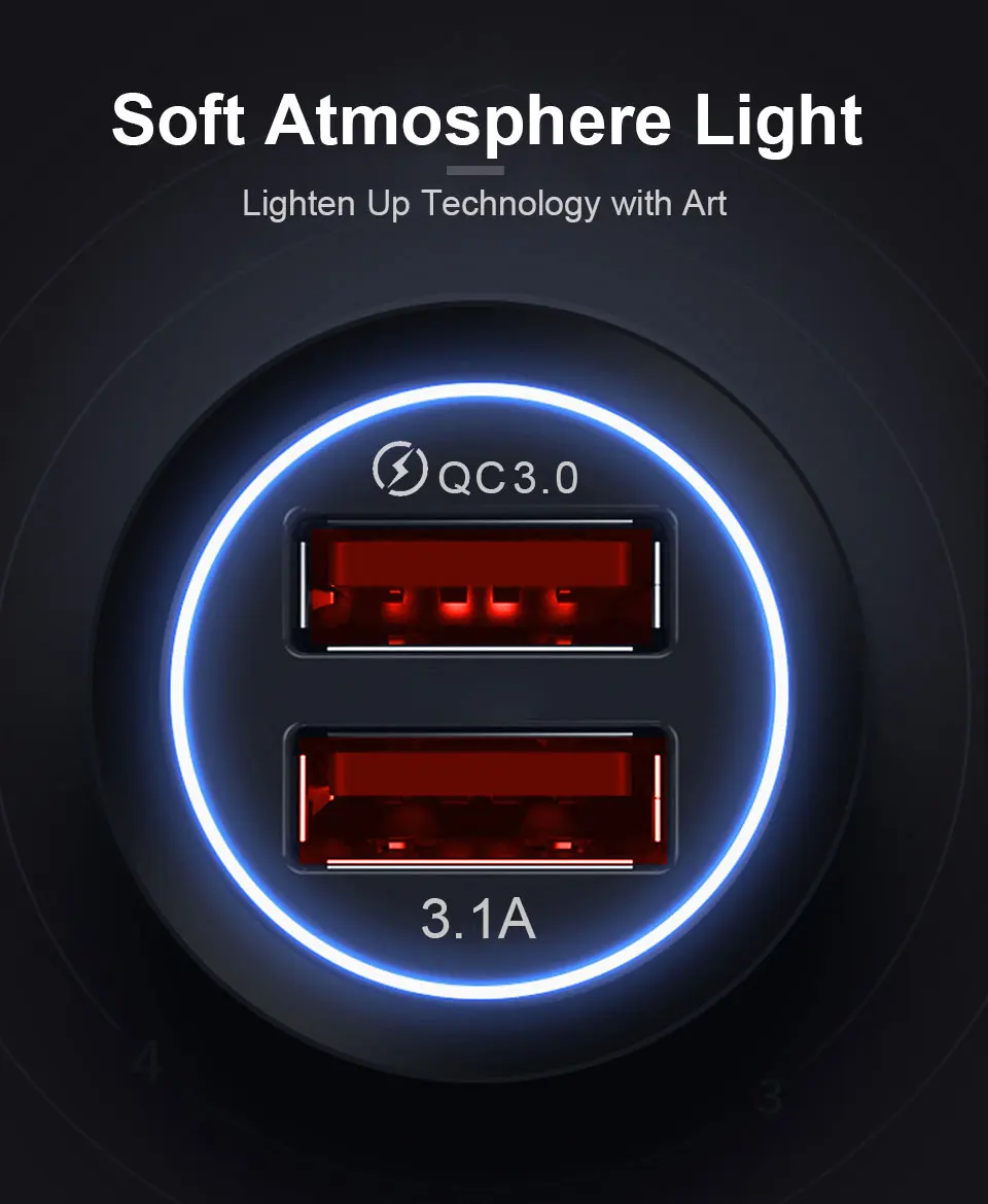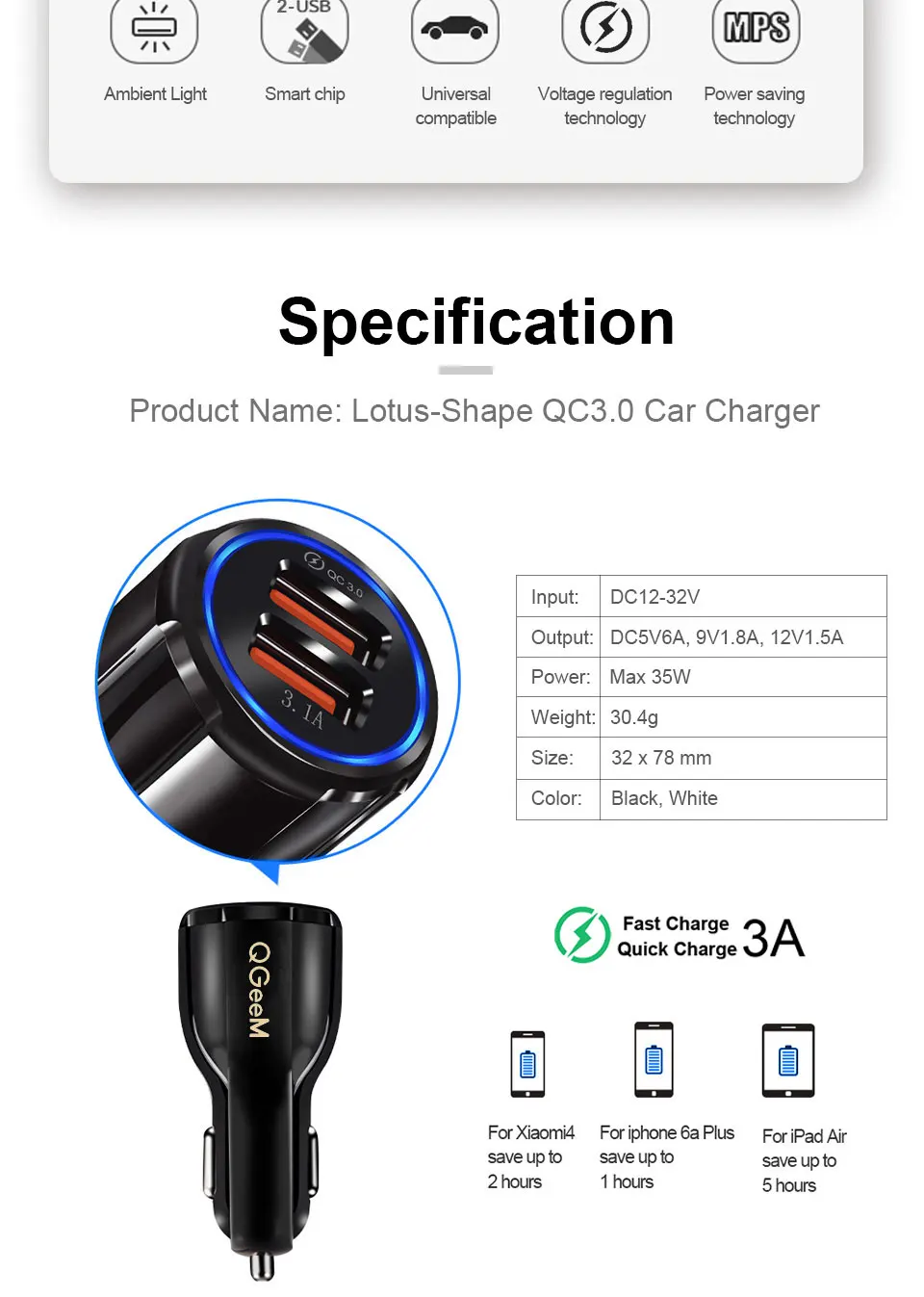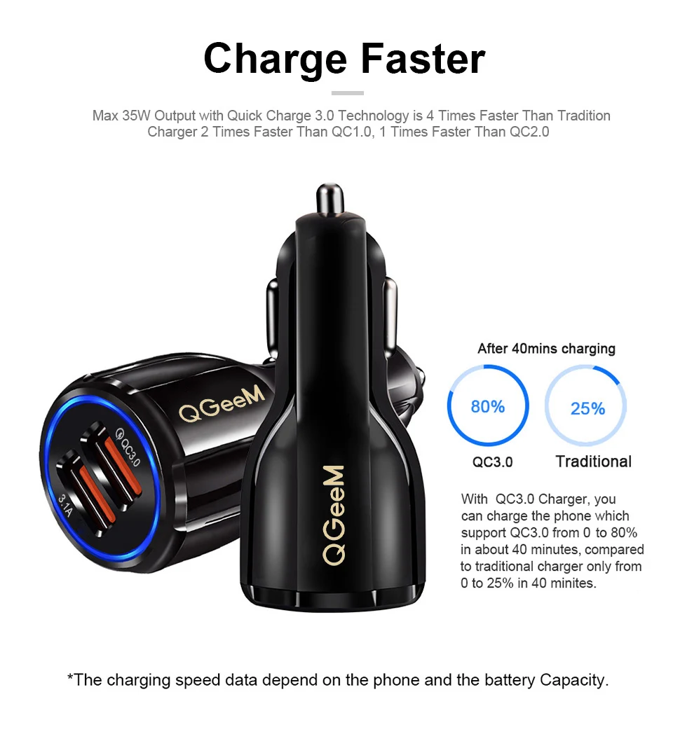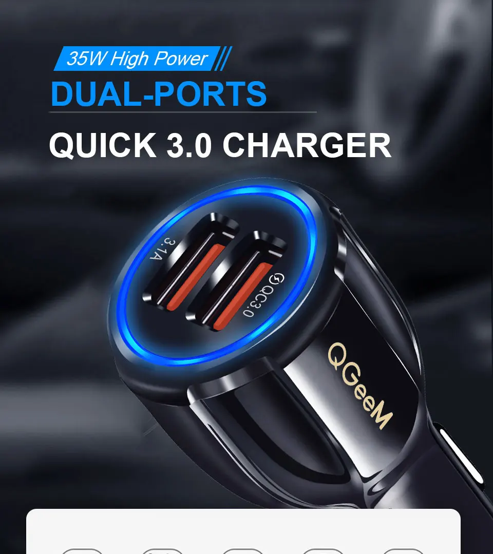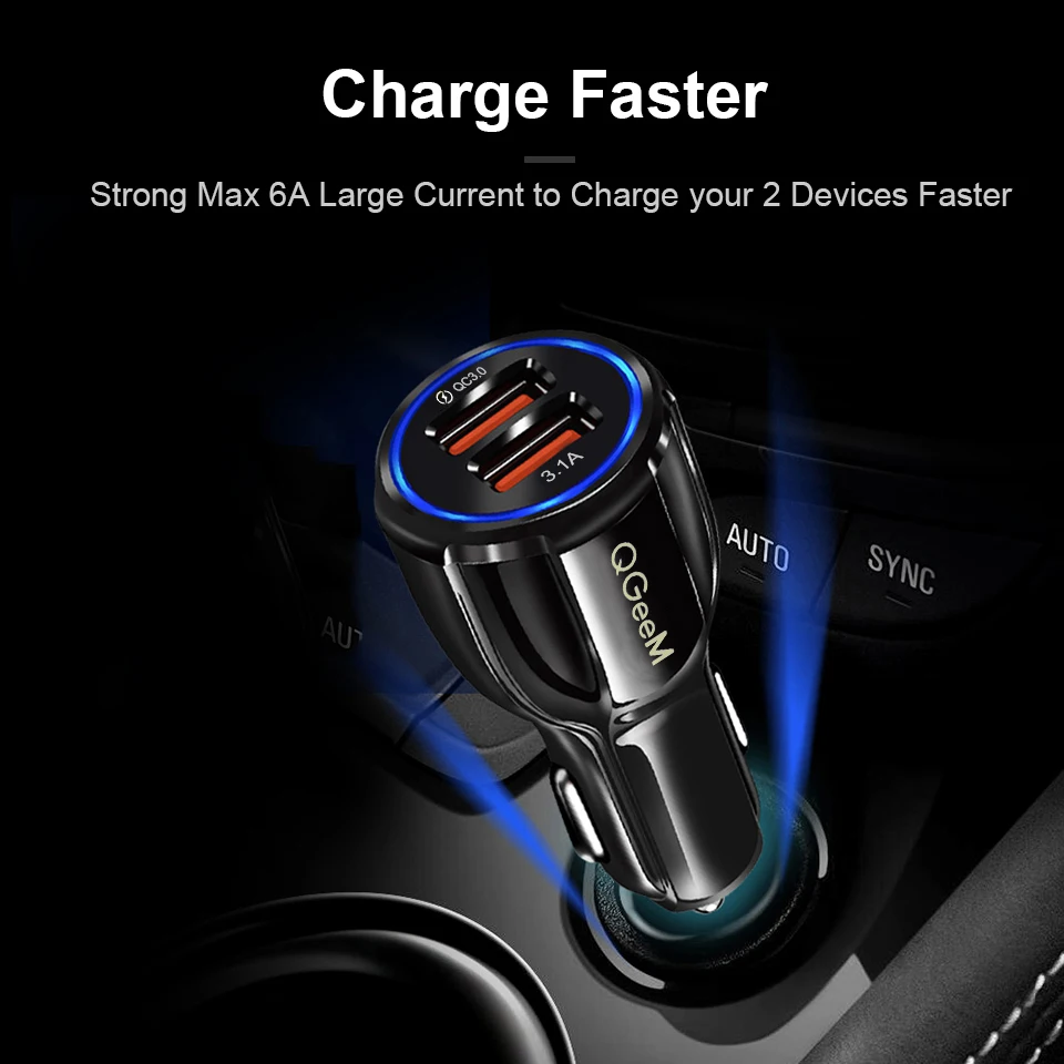 Автомобильное зарядное устройство QGEEM с 2 USB-портами и поддержкой быстрой зарядки