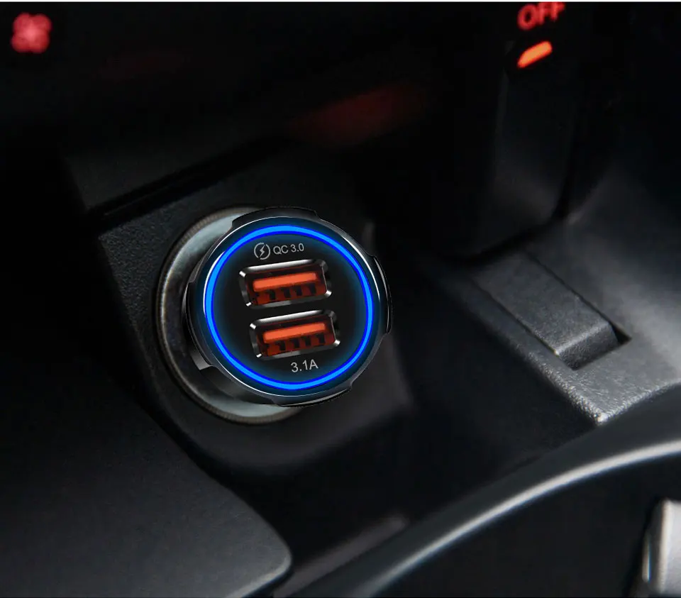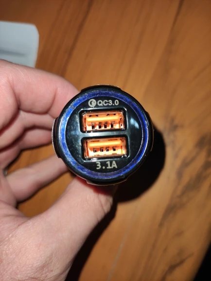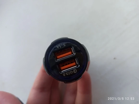Два Ампера выдаёт, на три нагрузить нечем. Quick Charge присутствует. В разъёме прикуривателя сидит не очень плотно. Подпружиненный центральный контакт немного выталкивает устройство из разъема. Подсветка тусклая.