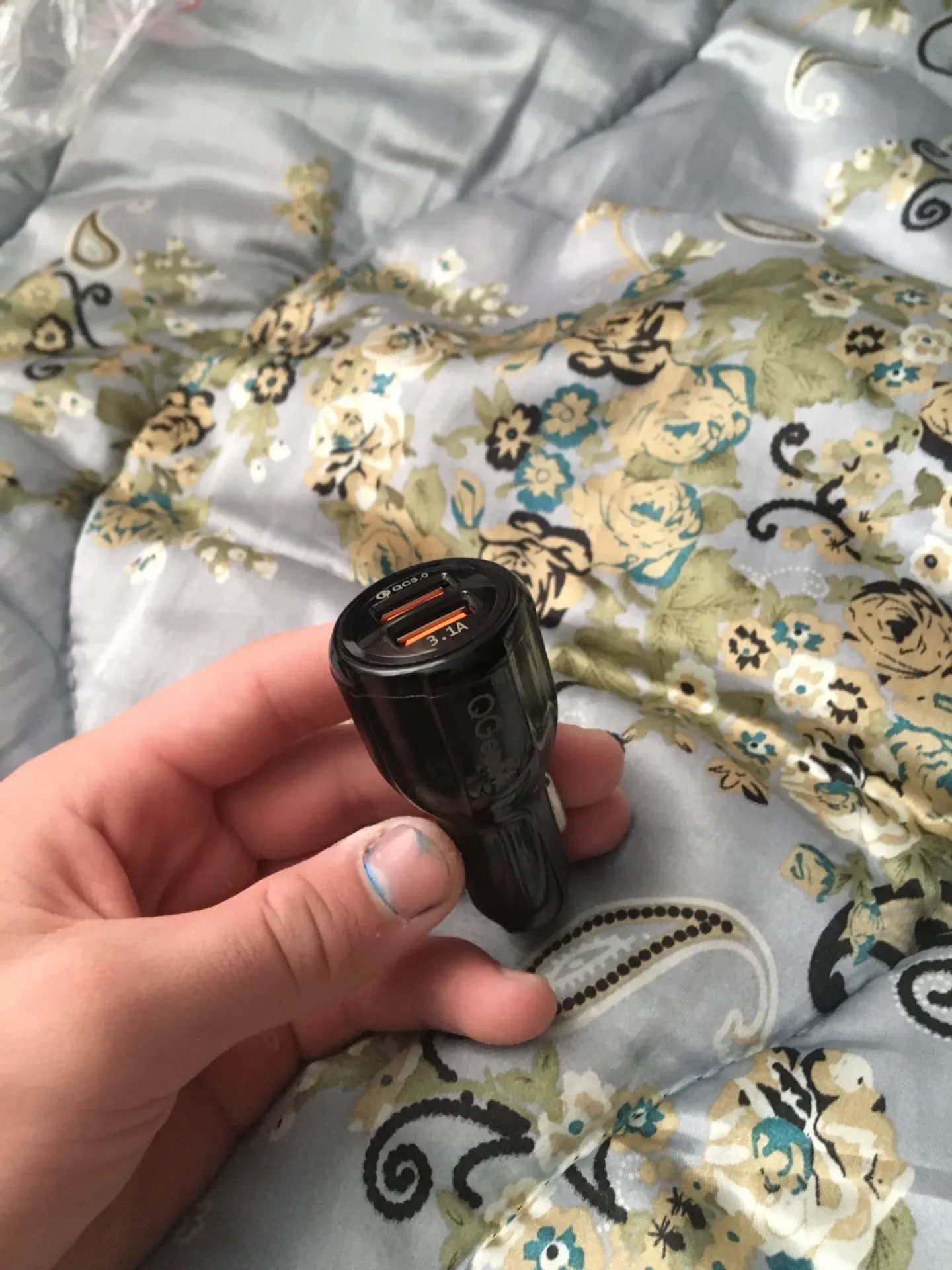 Доставили очень быстро.Один порт с поддержкой быстрой зарядки, один порт обычный. Благодаря подсветке удобно в темное время.