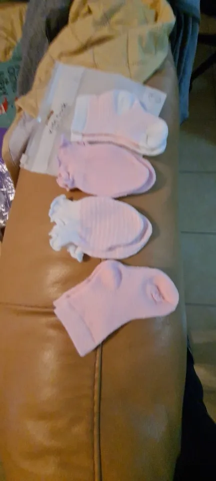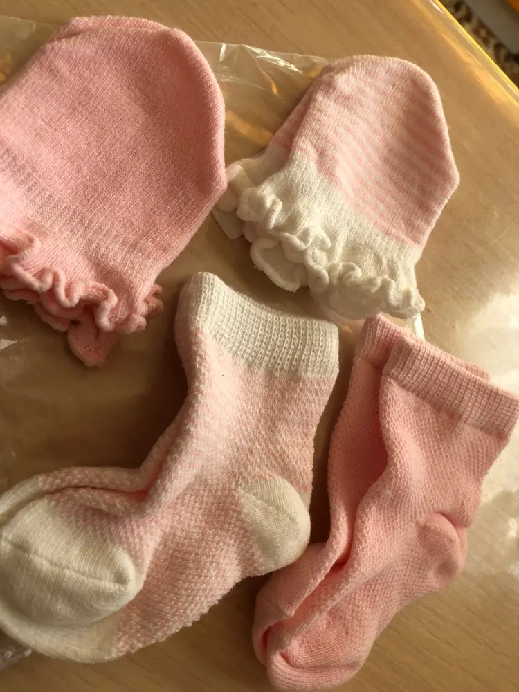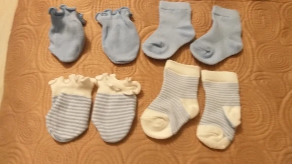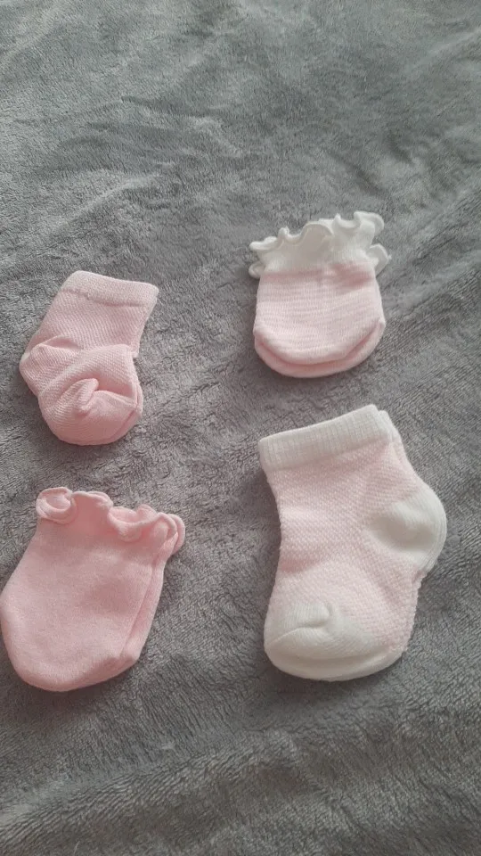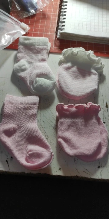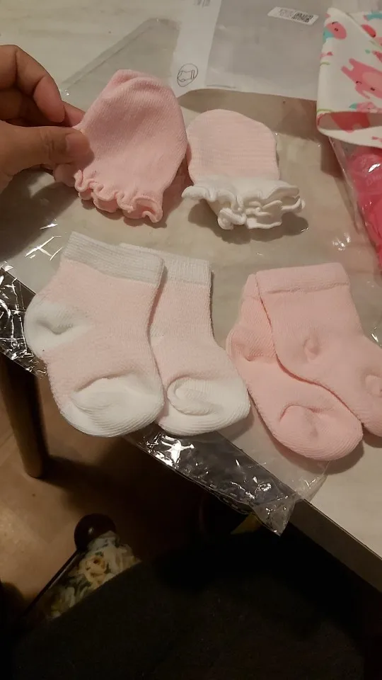 Хороший наборчик, носочки прям маленькие, то и хотелось, антицарапки тоже крошечные, но кажется будут спадывать с ручек. Посылка до Новосибирска шла месяц, продавец отправил сразу