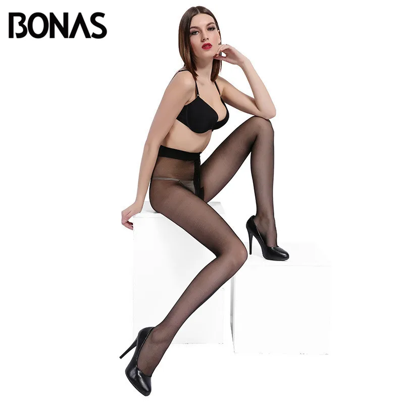 Колготки BONAS 2D T с промежностью, женские черные нейлоновые колготки, тонкие сексуальные чулки для девушек, Женские однотонные колготки в подарок