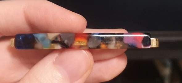 От заколок пластиковое покрытие отрывается ещё до того, как успеешь надеть. Приклеить невозможно, так как форма пластика и самой заколки не совпадают.