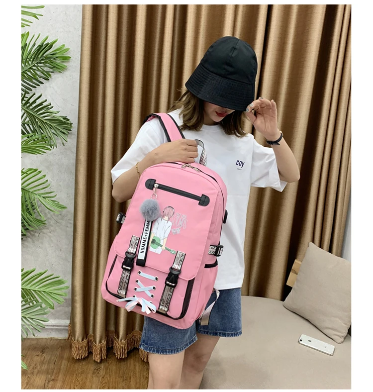 Большие Школьные сумки для девочек-подростков с лентой, USB, школьный замок рюкзака, нейлон, 2019, большой школьный рюкзак для подростков, женский рюкзак