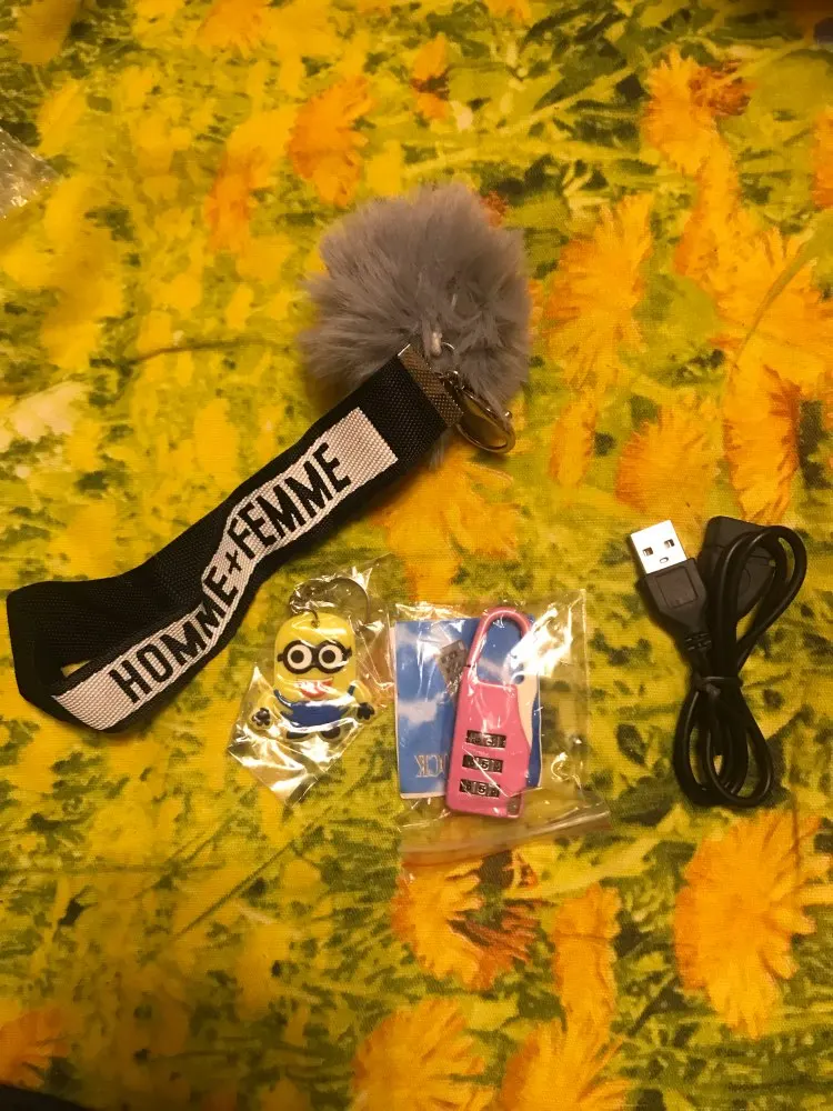 нормальный рюкзак. посмотрим, надолго ли хватит. в рюкзак положили кодовый замочек, брелок меховой, проводок и брелок-сову.