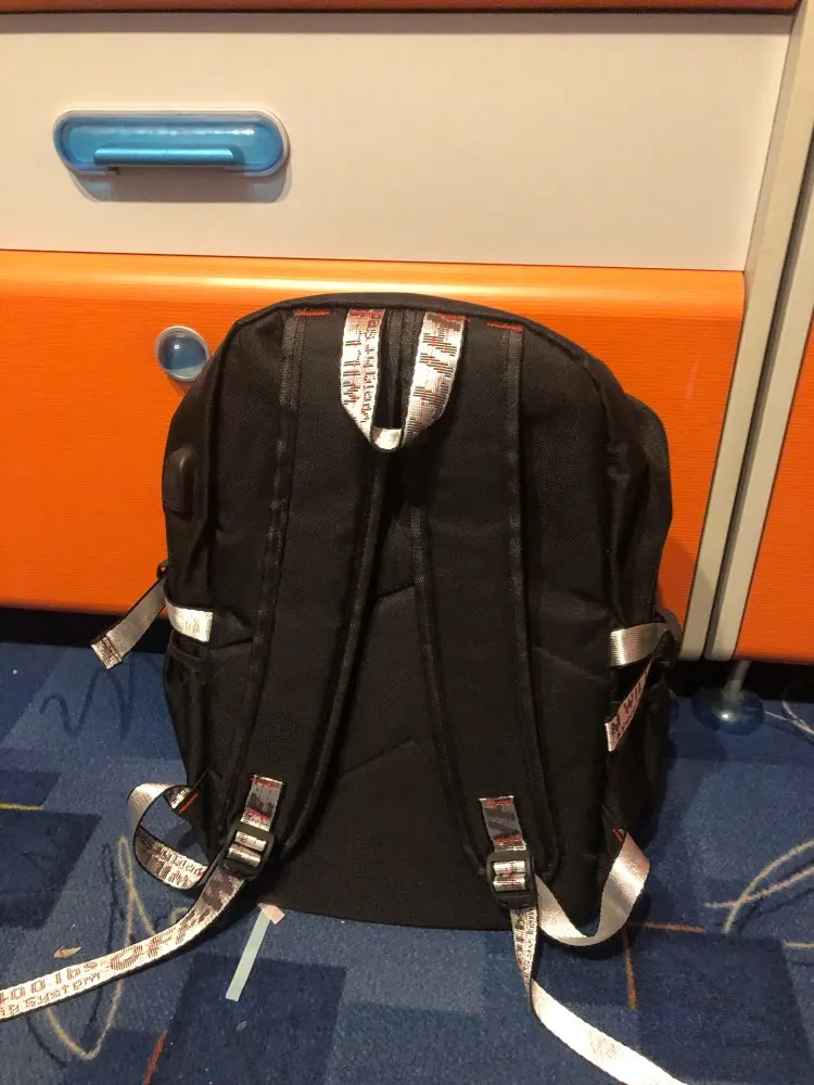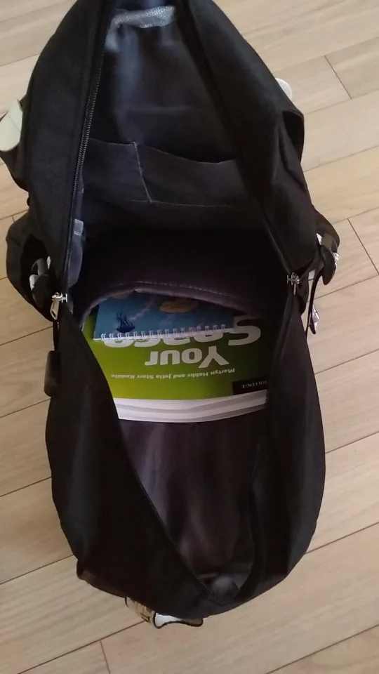 Идеально упакованный. Он прибыл раньше, чем ожидалось. Очень красиво и как описано. Достаточно места после размещения книг и имеет несколько отделов, две боковые карманы для бутылки с водой или зонтиком. Он также имеет usb-кабель для подключения к внешнему аккумулятору. Он едва весит и удобен.