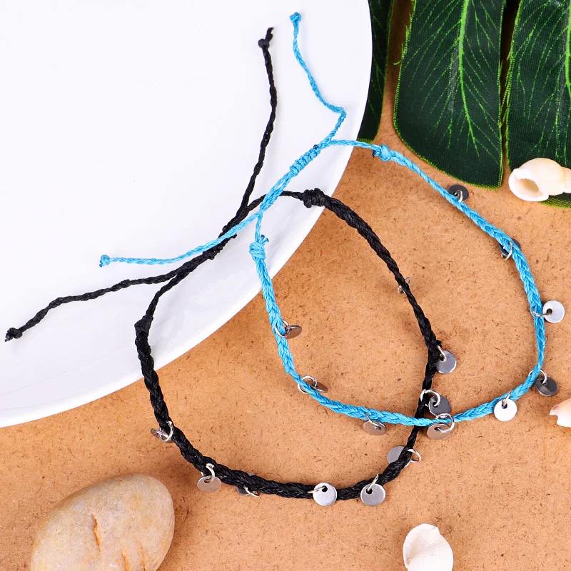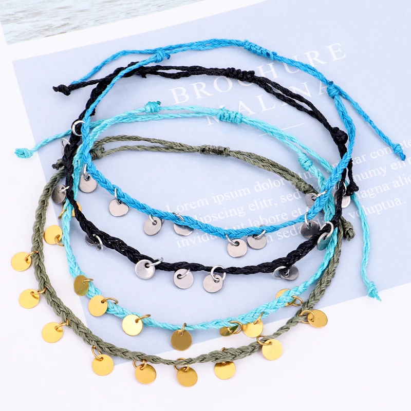 Браслеты ручной работы женские, водостойкий воск, с медными подвесками на ногу, пляжные украшения